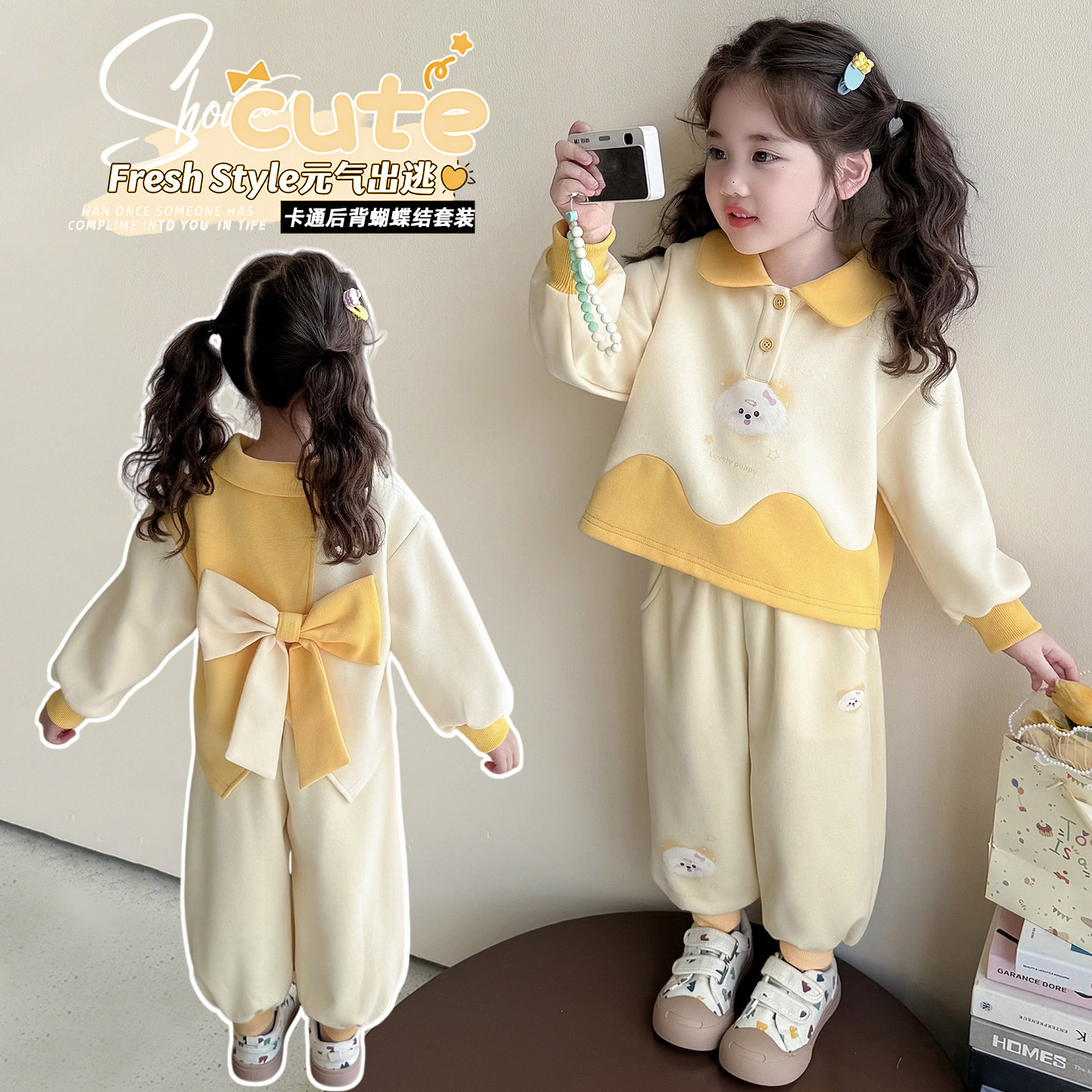 女童春季套装2026春装新款儿童巨好看甜美蝴蝶结卫衣小女孩两件套