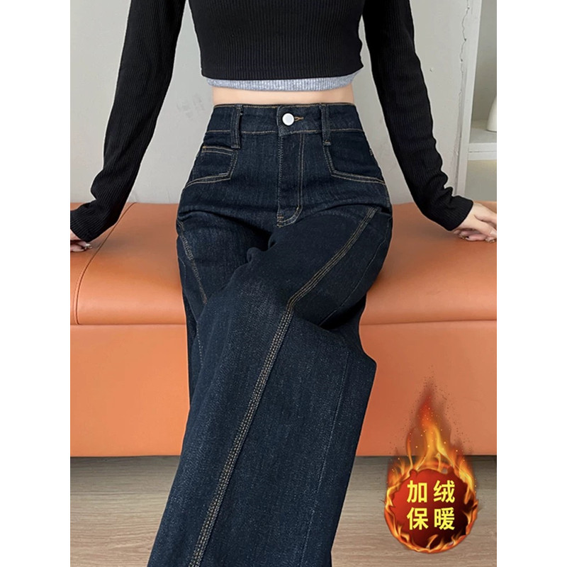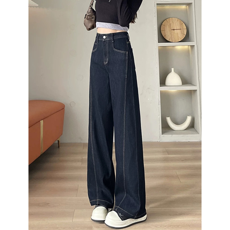 今年流行爆款阔腿牛仔裤女春季秋冬2026新款丹宁蓝弹力直筒拖地裤