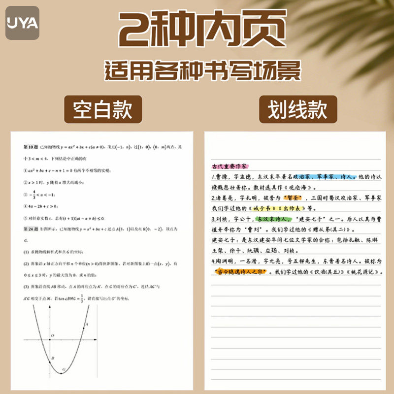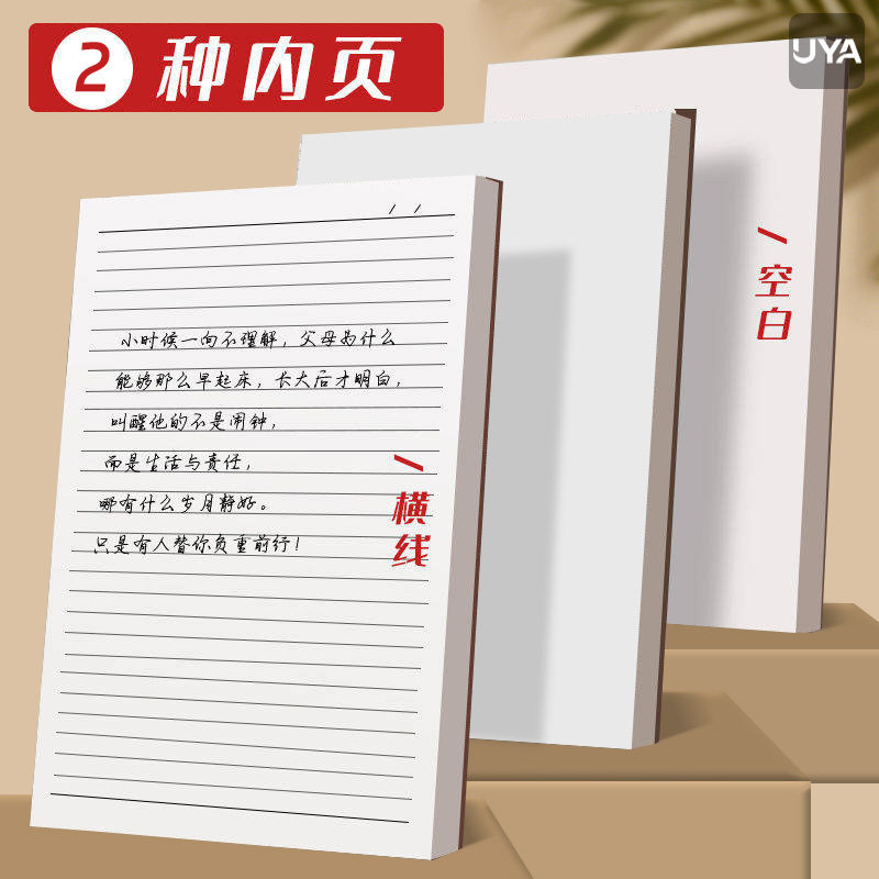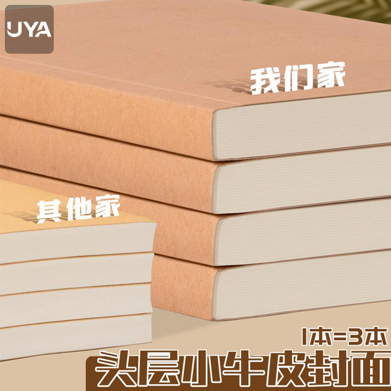 复古牛皮纸笔记本超厚空白本子加厚白纸本草稿本学习可平摊高颜值本记事本日记本A5小方格本大学生初中横线