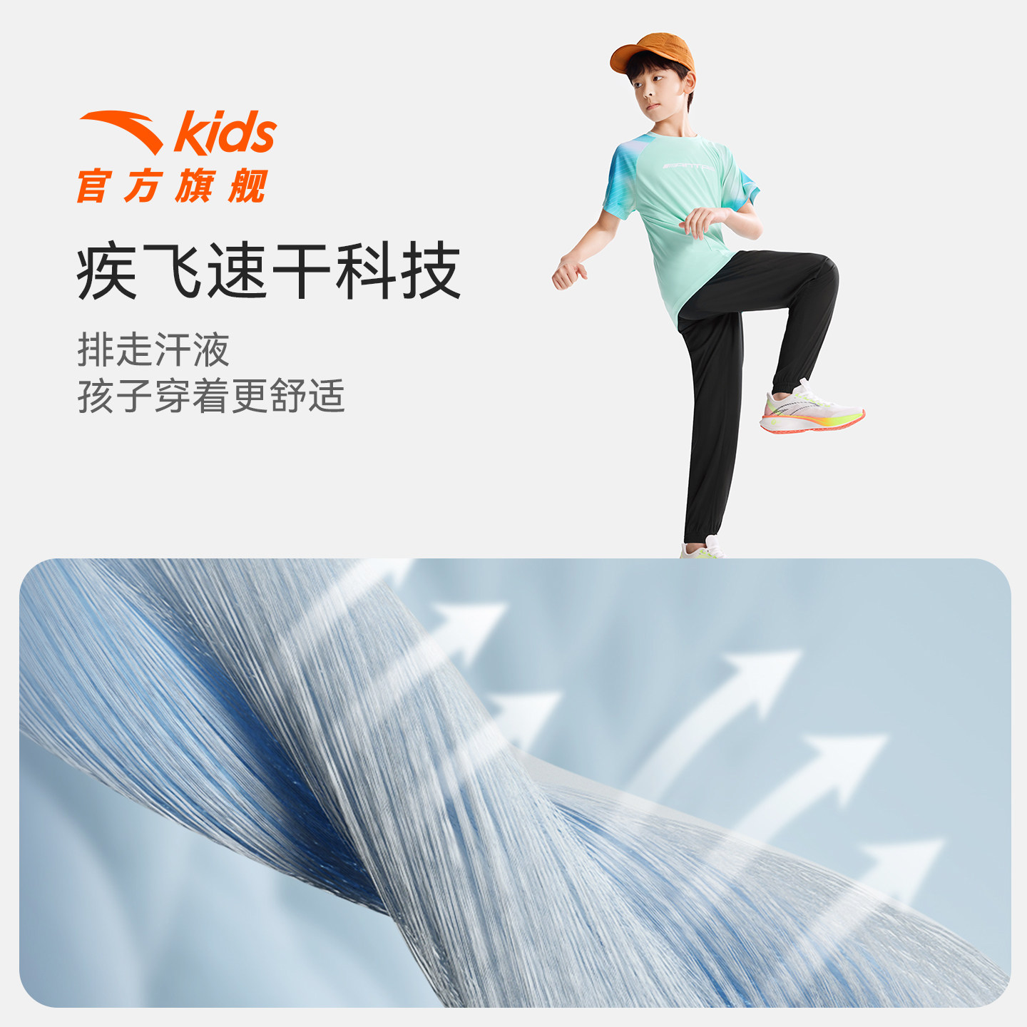 安踏儿童男女童针织运动套2026夏季新款透气儿童速干短袖长裤套装