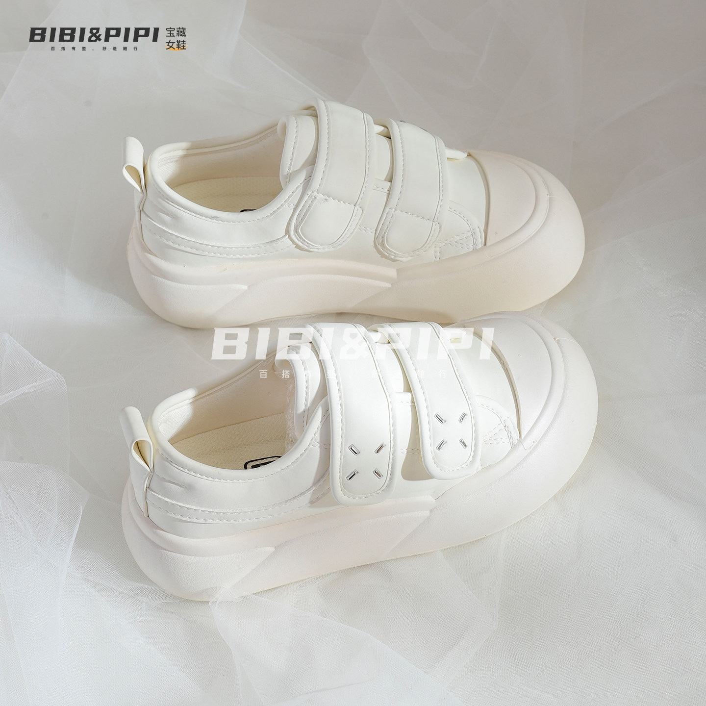 小众休闲厚底增高小白鞋2026春季爆款鞋子女鞋巨好看百搭魔术贴