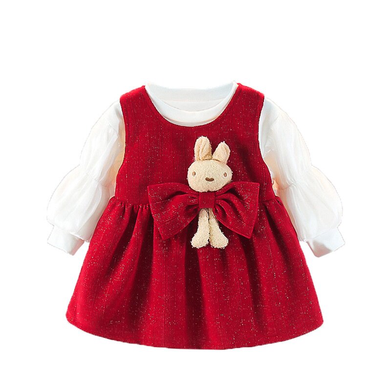 0-7岁湘雪女宝宝春秋长袖连衣裙两件套春装女童公主裙套装外出服