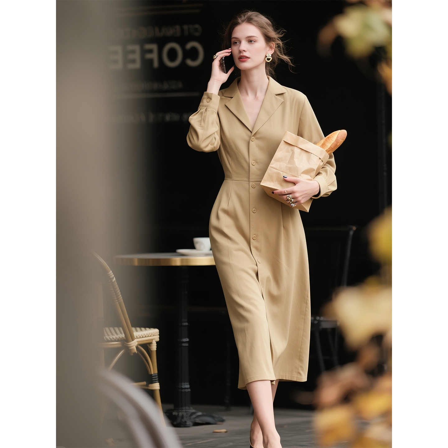 咖色灯芯绒衬衫连衣裙女2026年秋冬新款长袖巨好看的美拉德裙子