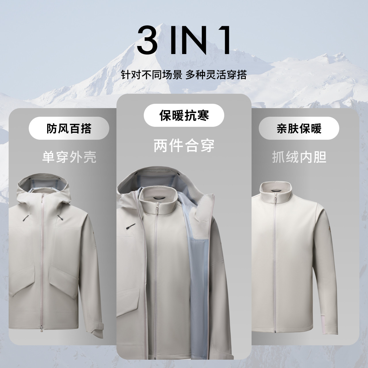 DESCENTE迪桑特男士防风防水透湿软壳内软壳三合一冲锋衣两件套