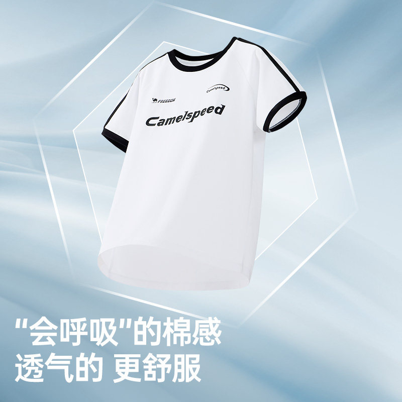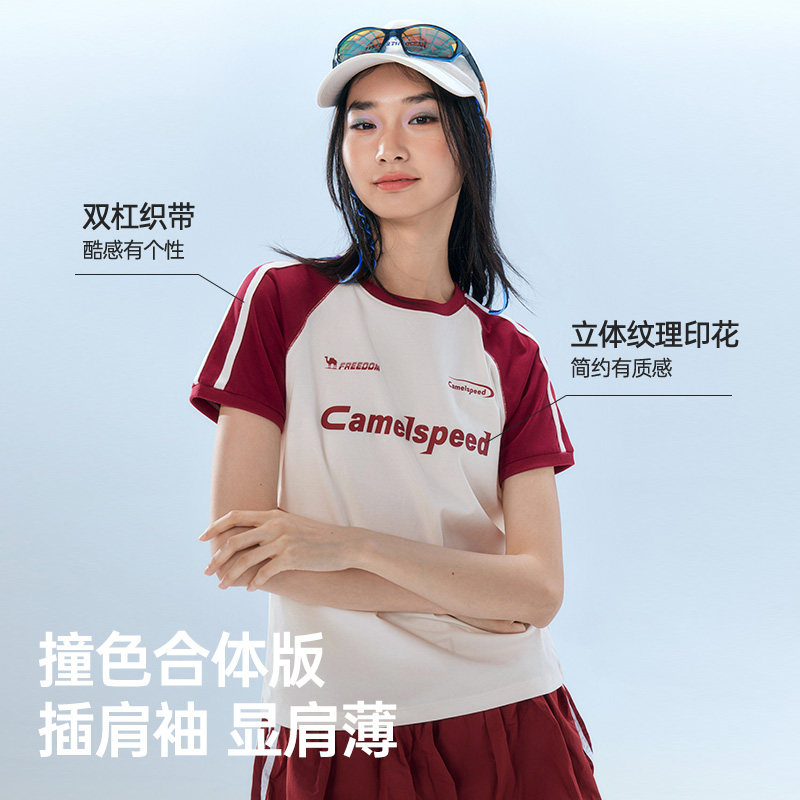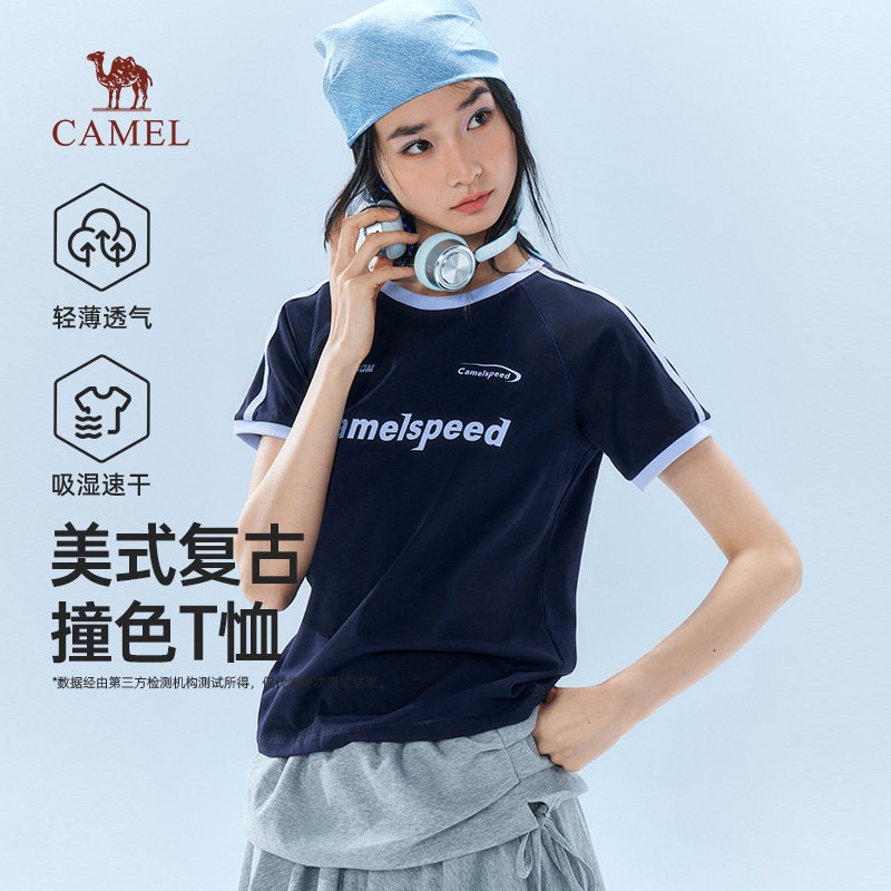 骆驼女款短袖T恤女夏季2026新款美式复古速干运动印花半袖上衣女