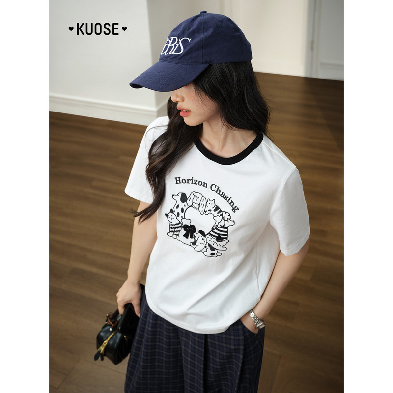 阔色字母刺绣正肩短袖t恤2026春夏季新款女装搭配好看白色上衣秋