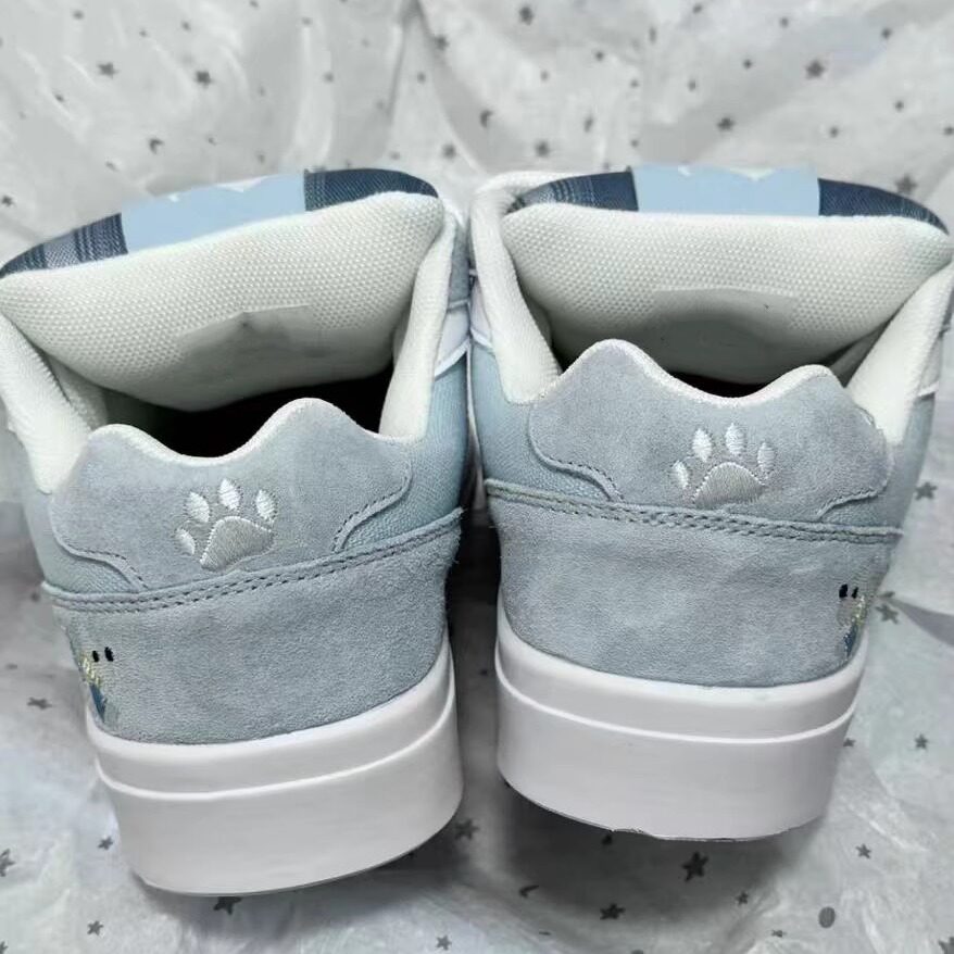 国潮灰蓝色小狗刺绣面包鞋女ins复古有擦声板鞋厚底增高运动鞋子