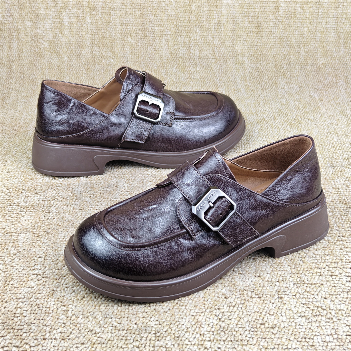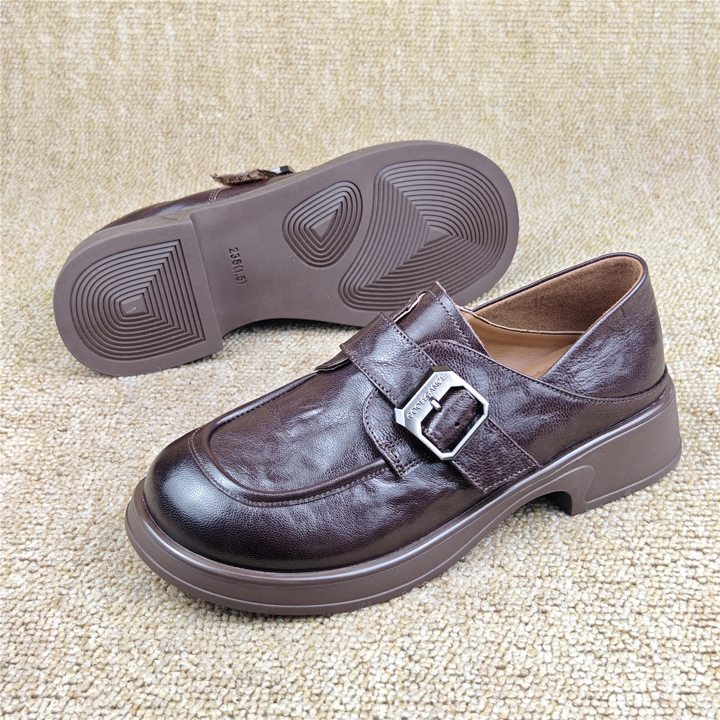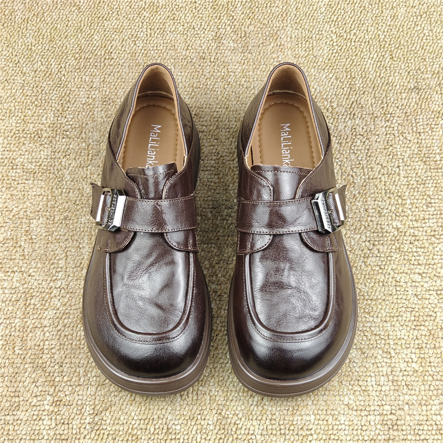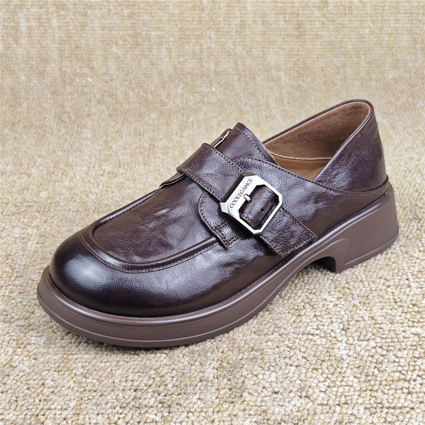 头层羊皮女鞋商场断码英伦风真皮乐福鞋厚底圆头一脚蹬休闲女单鞋