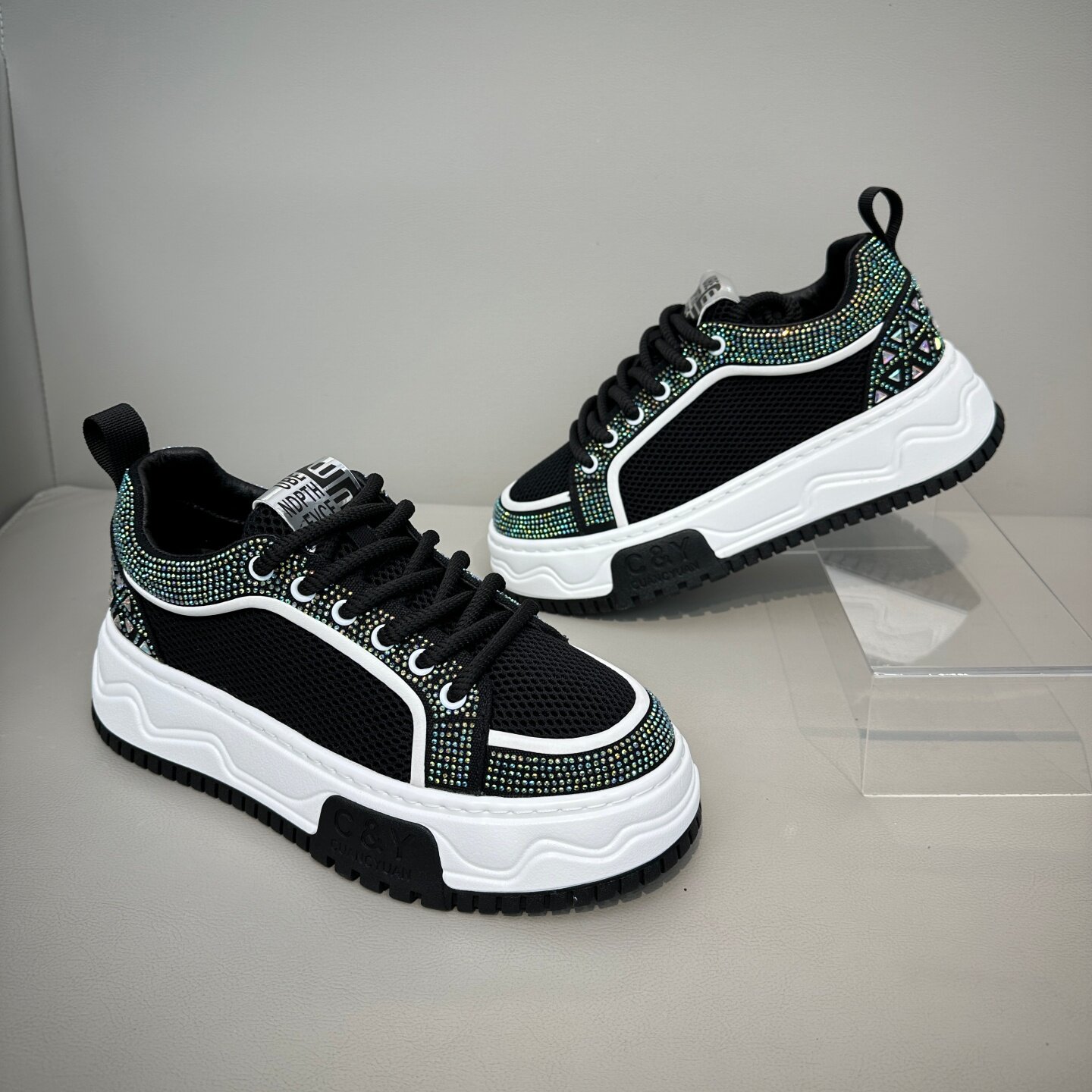 满天星小众水钻烫钻爆款潮鞋网面透气轻便百搭时尚休闲鞋高端男鞋