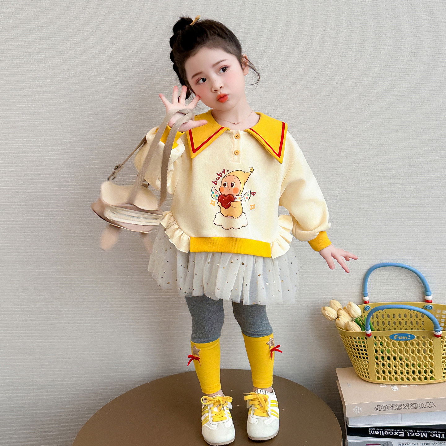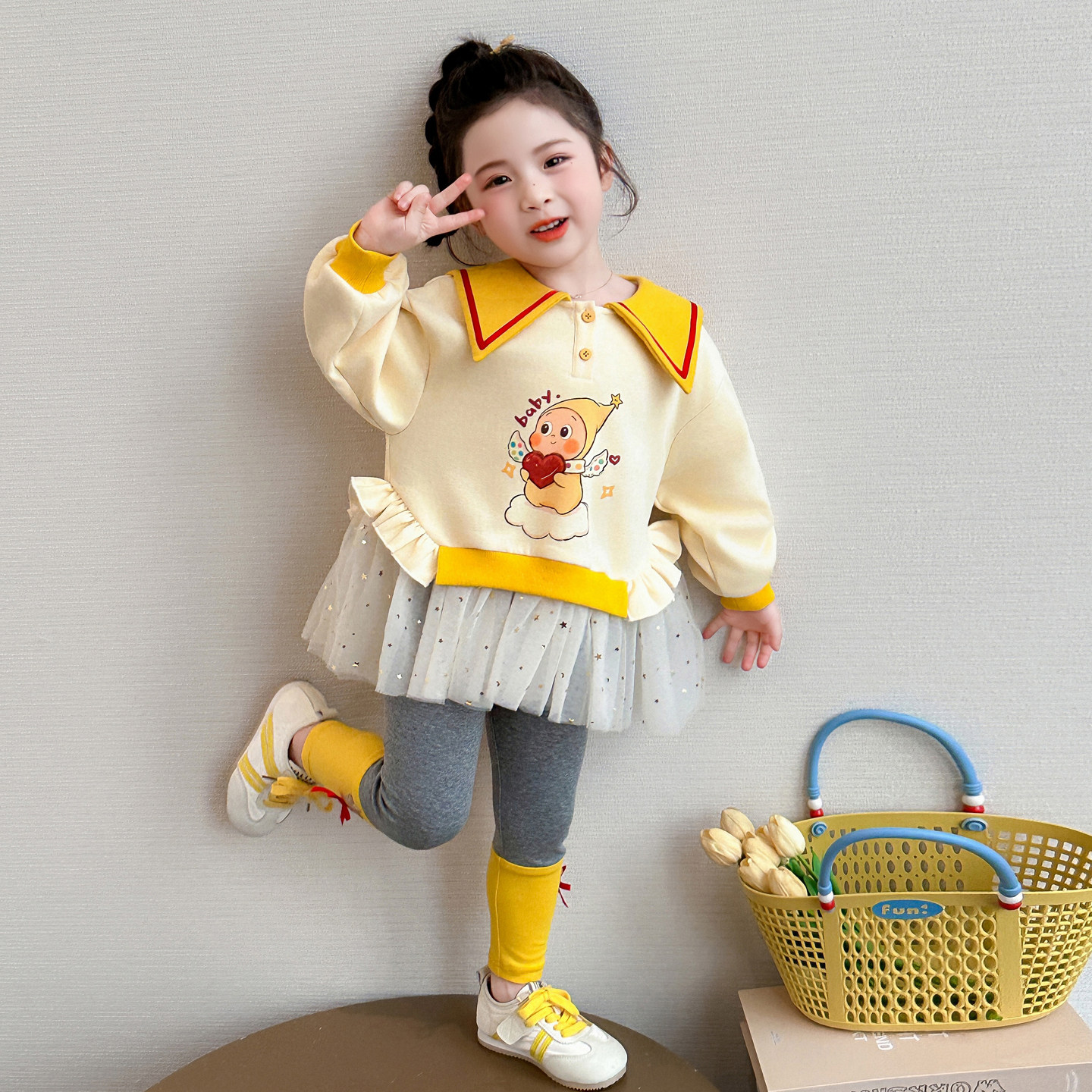 女童春秋星星人套装2026新款洋气时髦儿童女宝宝春季春装早春卫衣