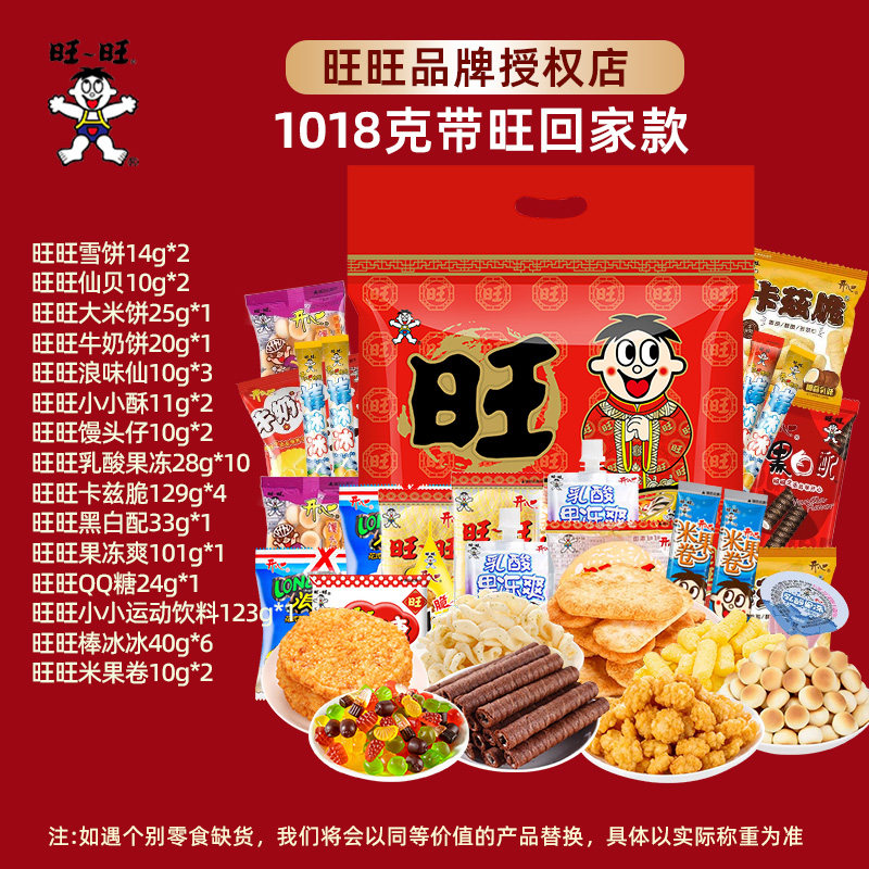 旺旺零食大礼包袋装仙贝果冻糖果组合休闲膨化食品年货置办送礼