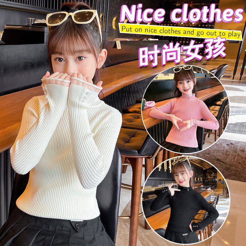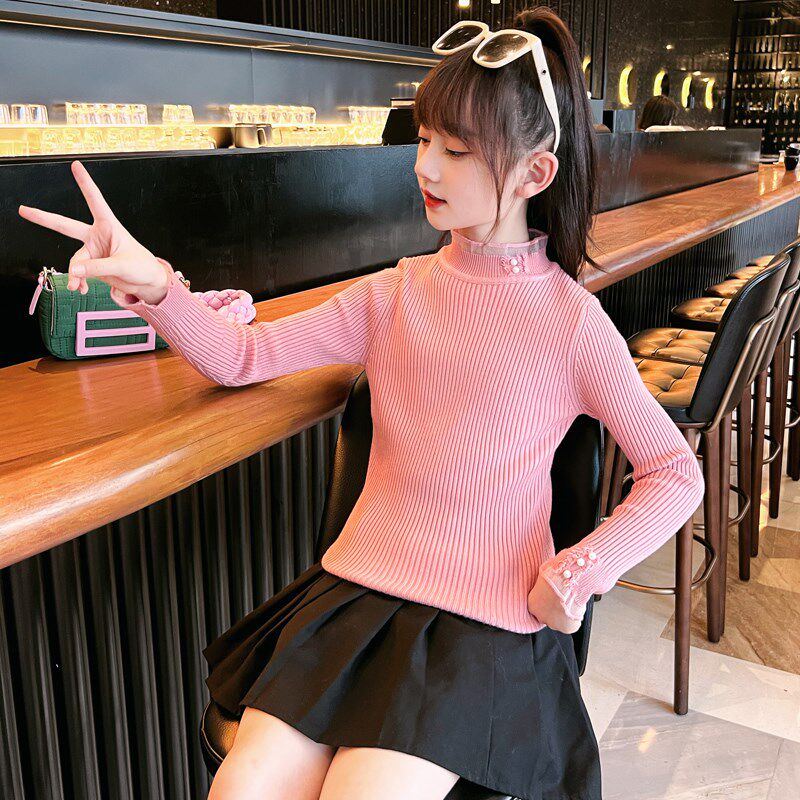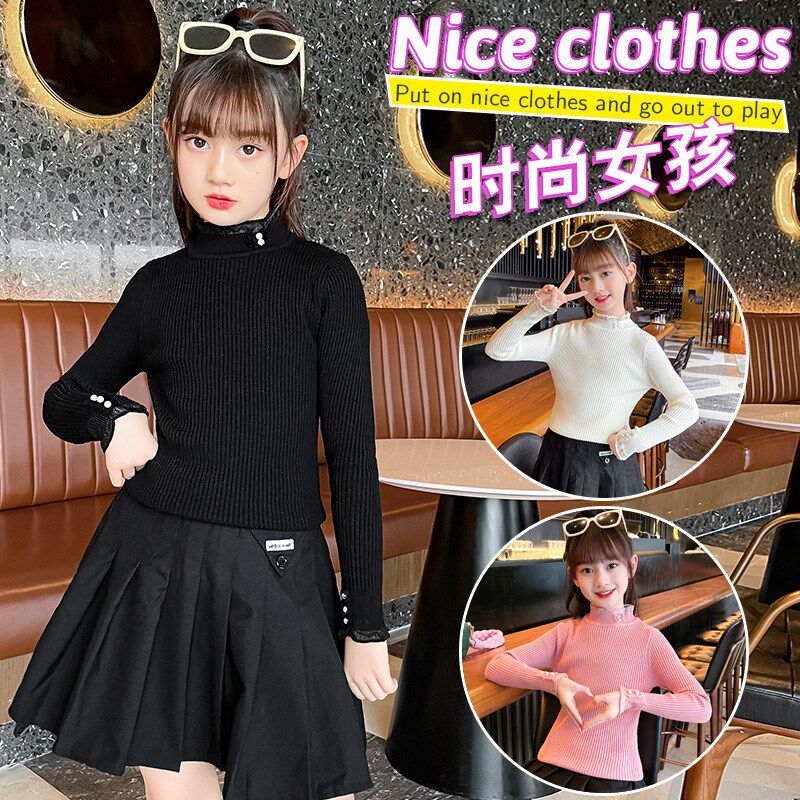女童打底衫冬季薄款2024新款洋气儿童时髦半高领内搭秋冬黑色毛衣