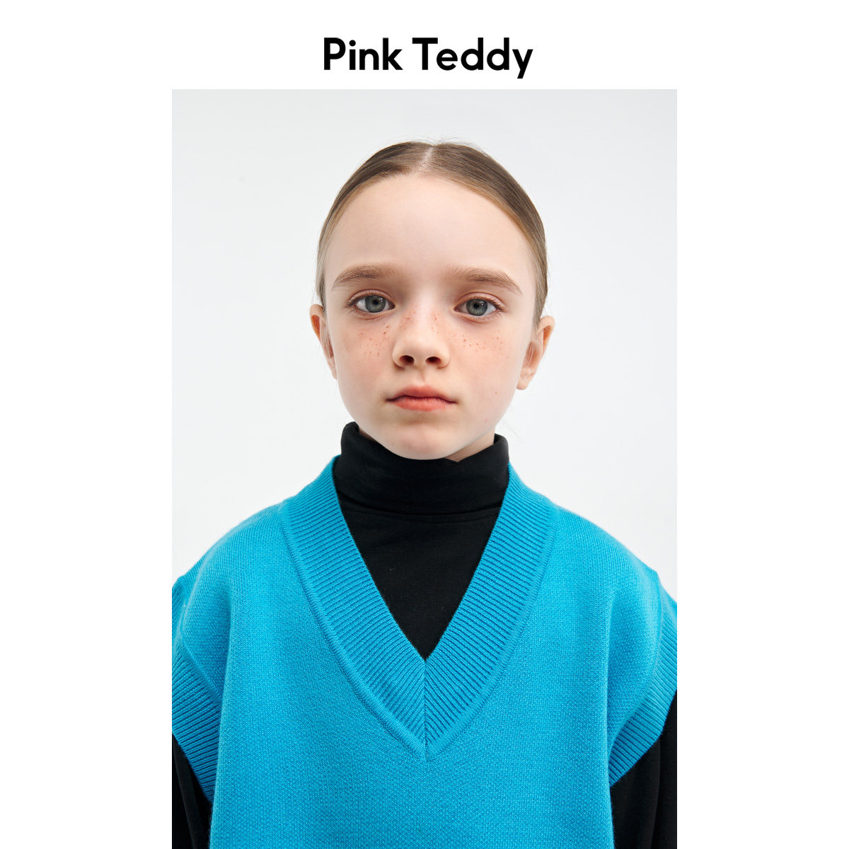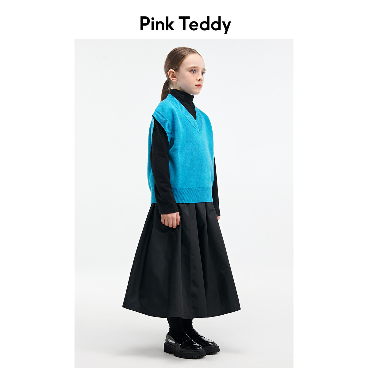 PinkTeddy童装女童蓝色毛衣马甲春秋装儿童百搭毛织套头背心上衣