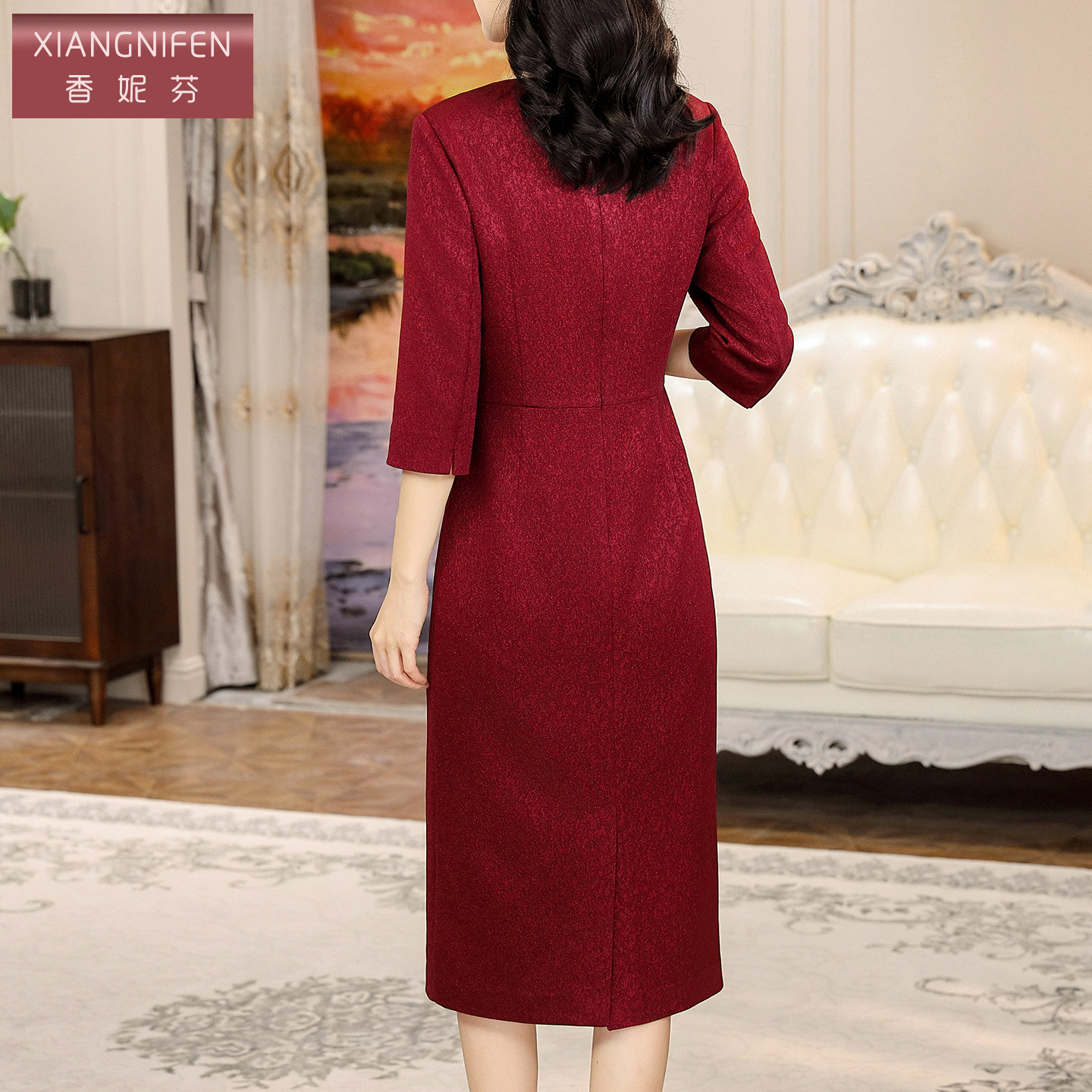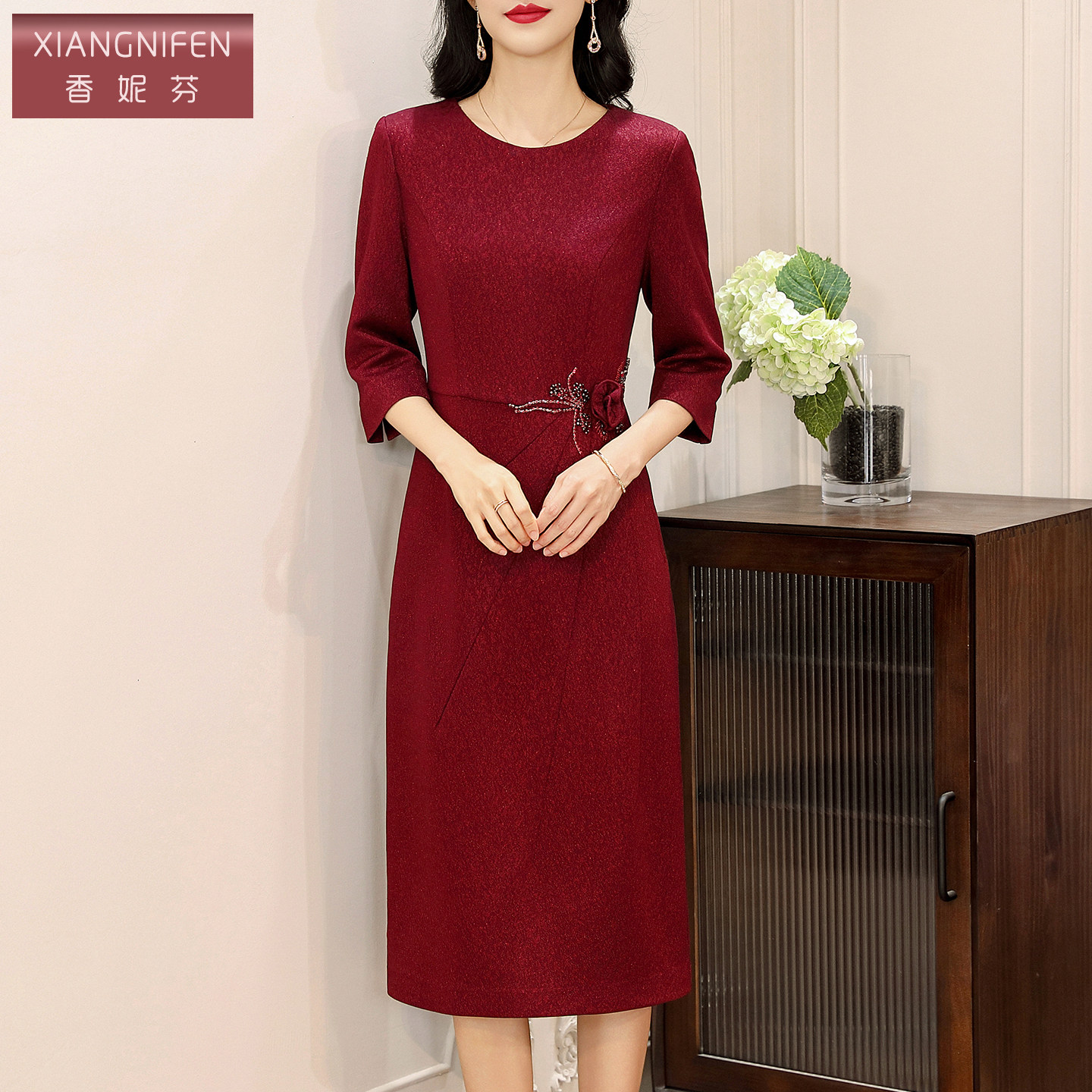 香妮芬优雅高档贵气2026春季新款连衣裙女轻奢高级感妈妈中长裙