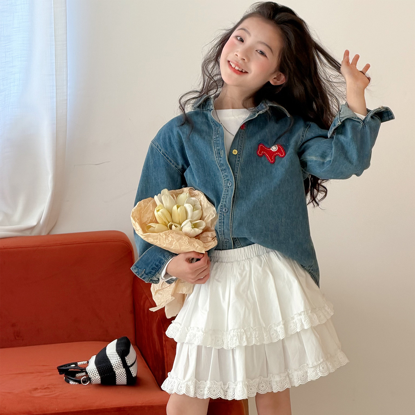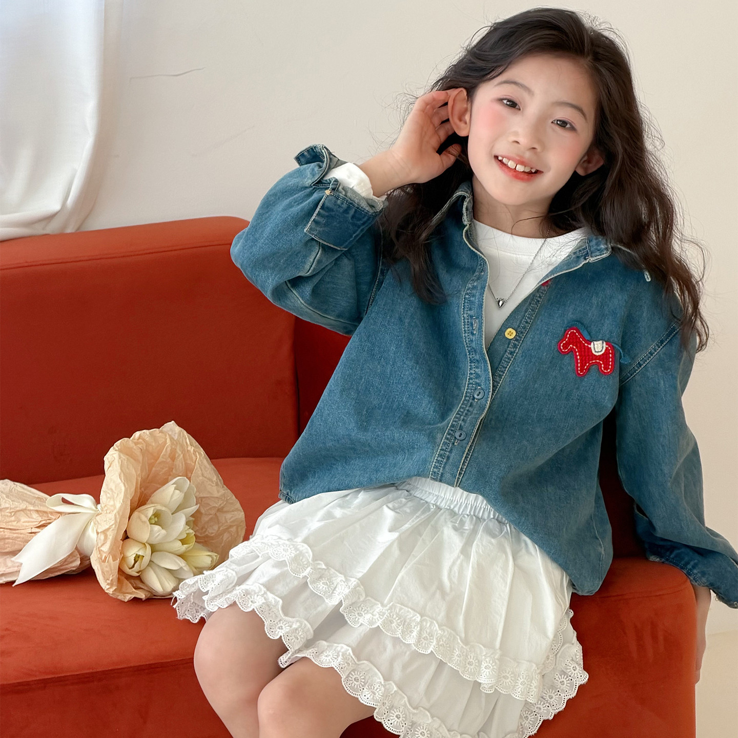 女童牛仔衬衫春装2026新款女大童洋气时髦超好看韩系长袖薄款外套