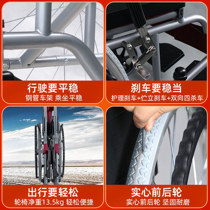 可孚便携式轮椅车医院同款外出老年人专用折叠超轻便小型简易旅行