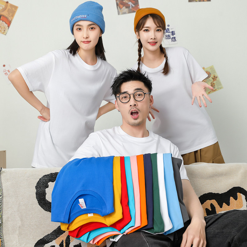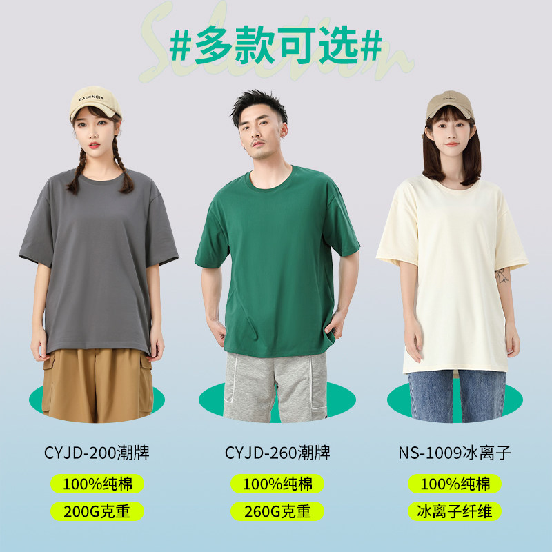 260G纯棉T恤工作服定制印logo短袖宽松落肩团体文化衫班服diy订制