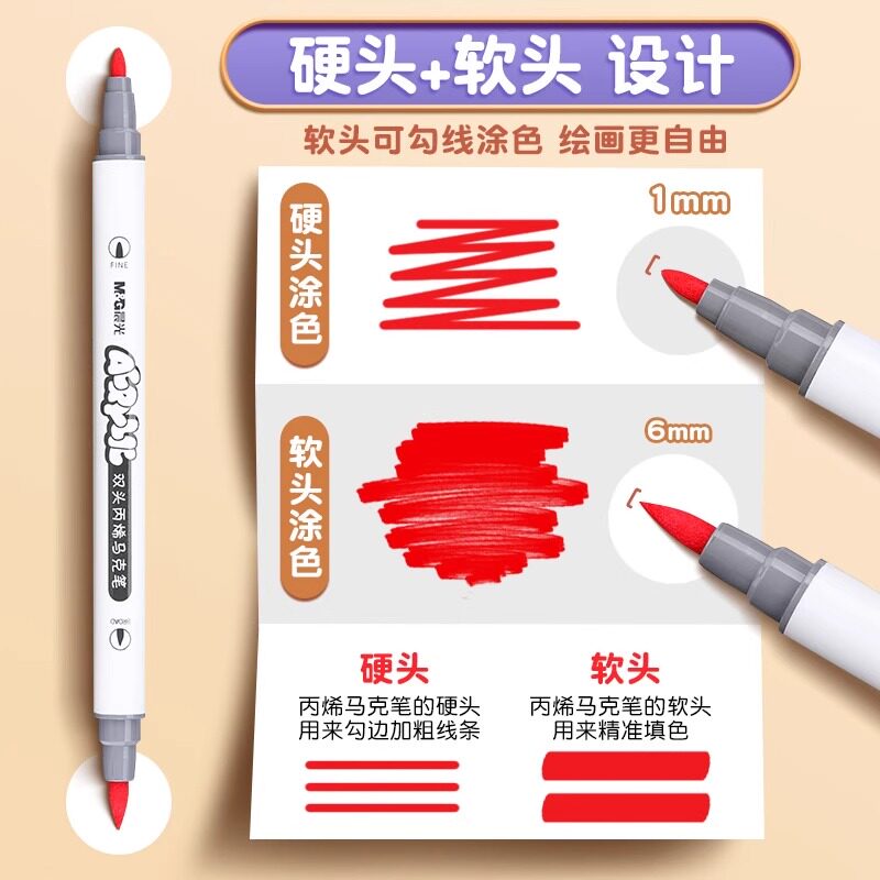 晨光丙烯马克笔官方旗舰店36色学生专用高颜值软头不透色可叠色48色24色水彩笔美术专用绘画双头防水白色画笔