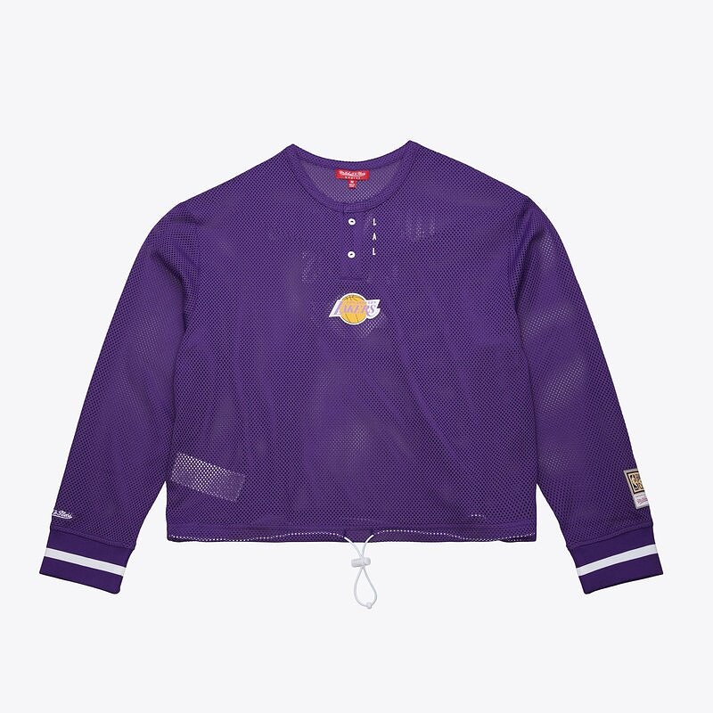 Mitchell&Ness长袖T恤掘金勇士湖人潮流网眼印花轻薄透气罩衫女MN