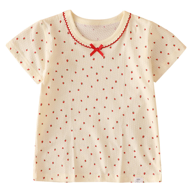 夏季网眼女宝宝纯棉T恤薄款女童短袖上衣无荧光A类中小童卡通半袖