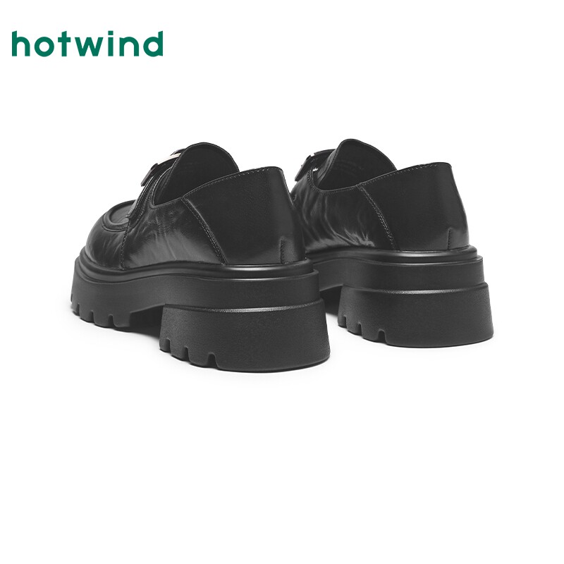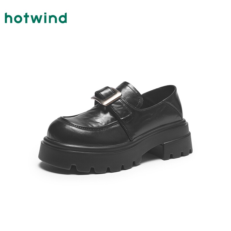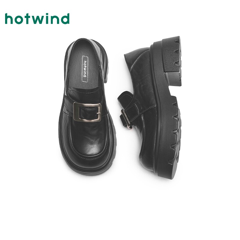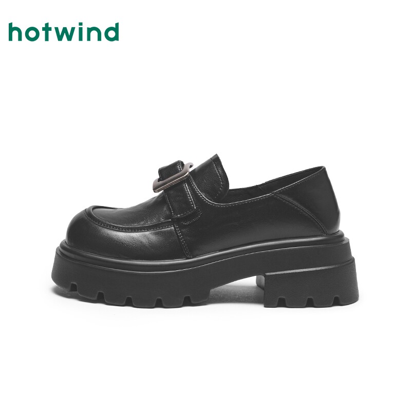 热风厚底乐福鞋女款2025年春季新款百搭粗跟皮带扣黑色小皮鞋子