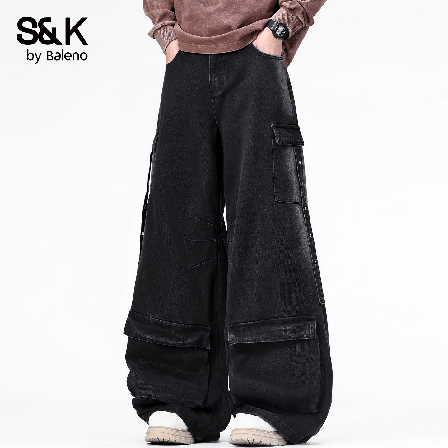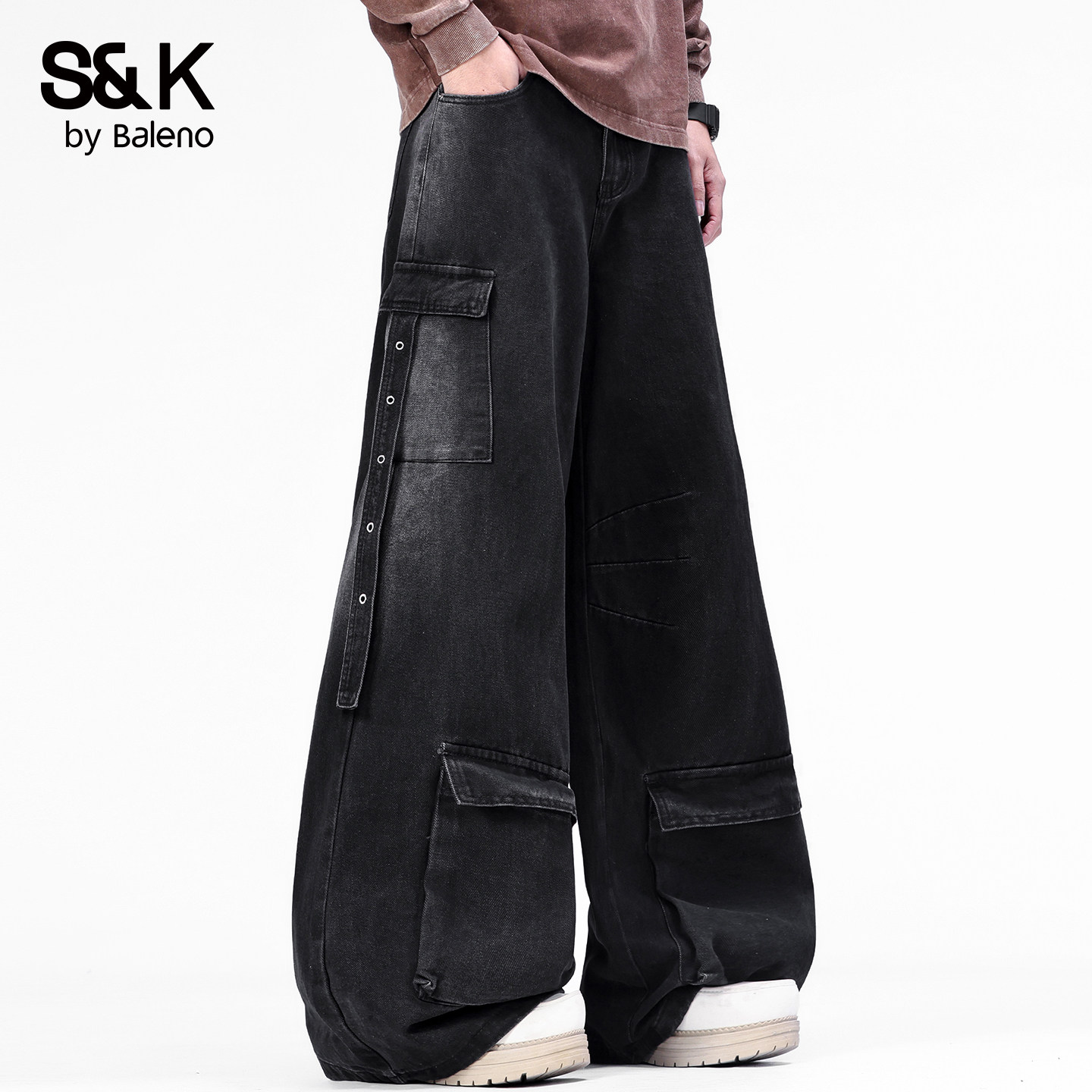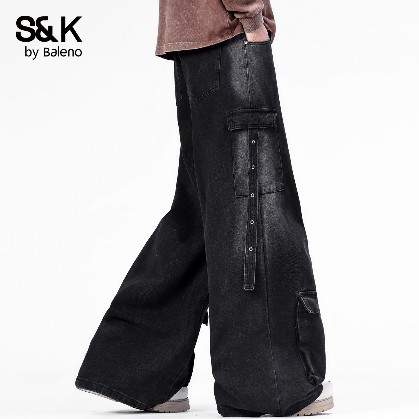 班尼路SK美式工装风阔腿牛仔裤男夏季2026新款宽松直筒时尚长裤YS