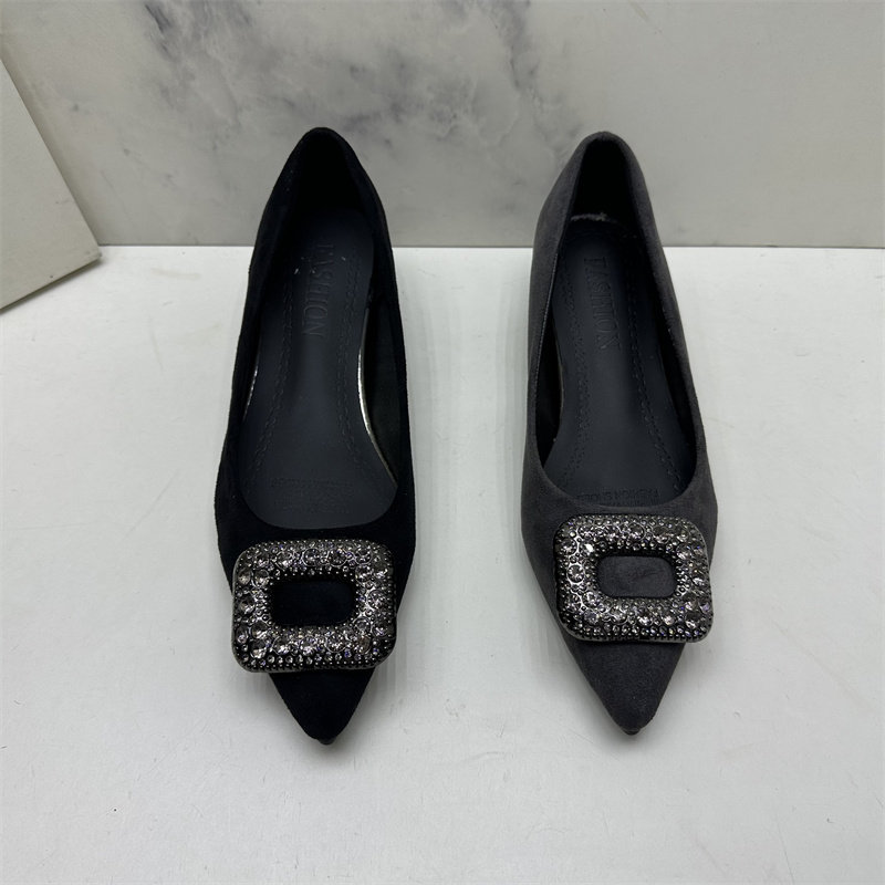 2026春季新款时尚气质水钻方扣尖头浅口单鞋内增高通勤优雅女单鞋