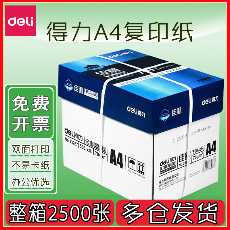 得力a4打印纸整箱批发打印机a4纸 珊瑚海70g复印纸打印机专用500张一包白纸学生草稿纸 80克双面打印a4复印纸