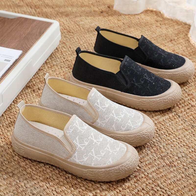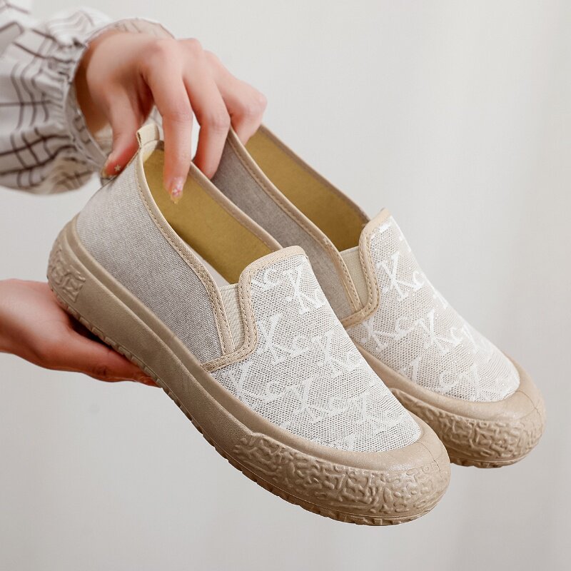 春夏新款老北京布鞋女鞋透气休闲厚底帆布鞋平底防滑一脚蹬渔夫鞋