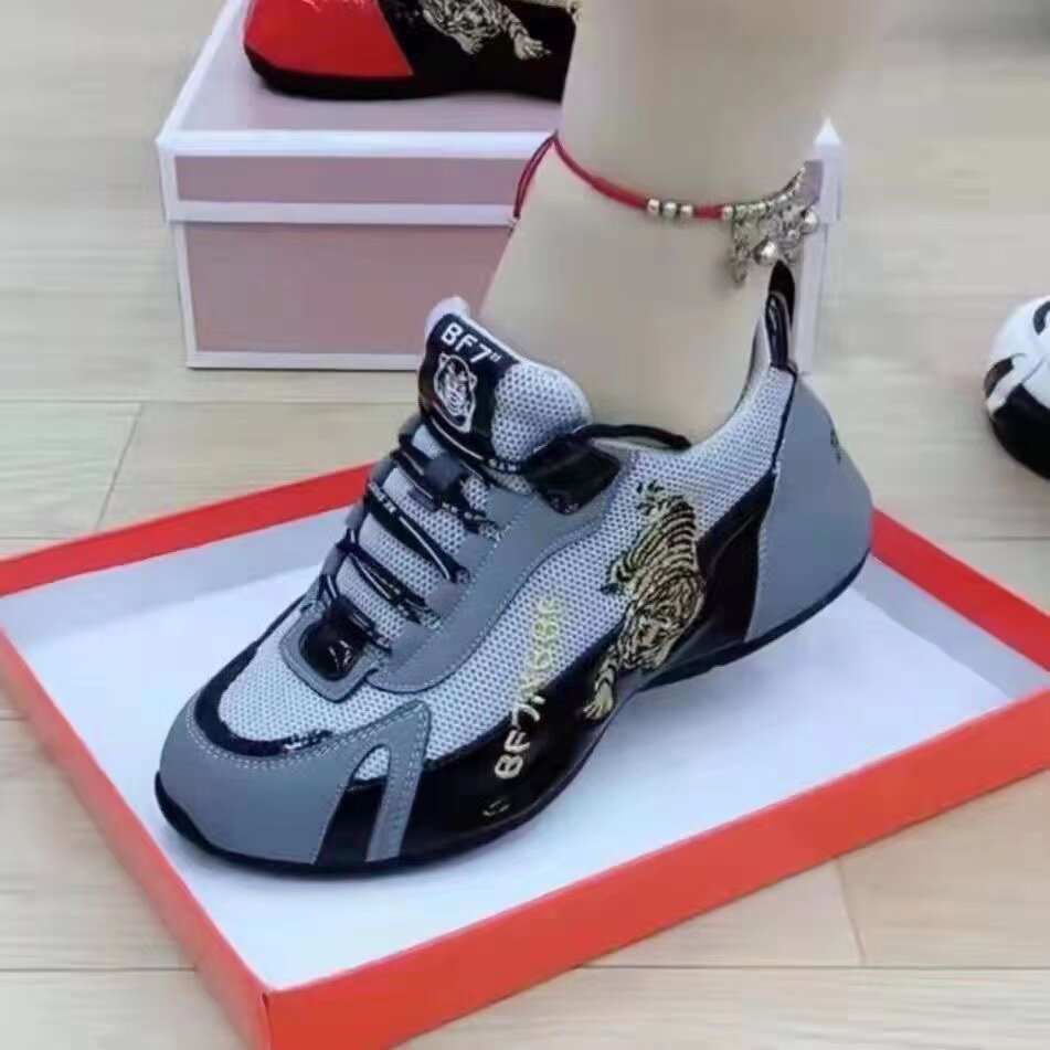 真皮老爹鞋女2025春季新款红色透气网面软底防滑轻便休闲运动单鞋