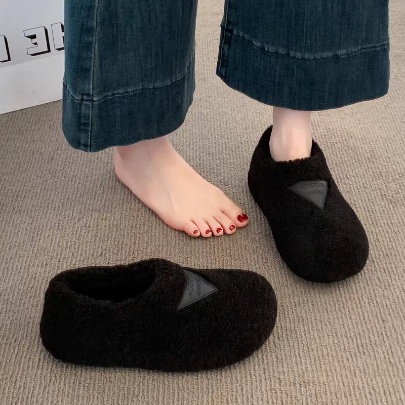 内增高厚底勃肯鞋毛毛鞋女2025新款冬季加绒雪地靴一脚蹬豆豆棉鞋