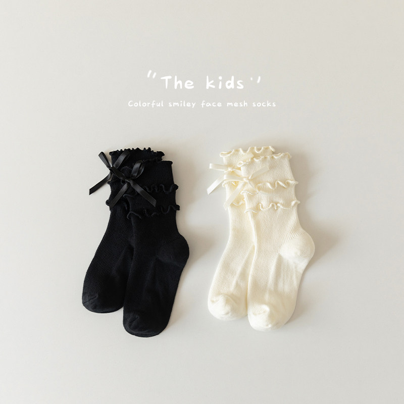 儿童袜子女童夏季薄款小女孩宝宝洛丽塔花边中筒长筒公主袜配裙子