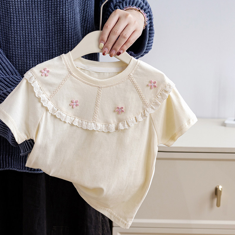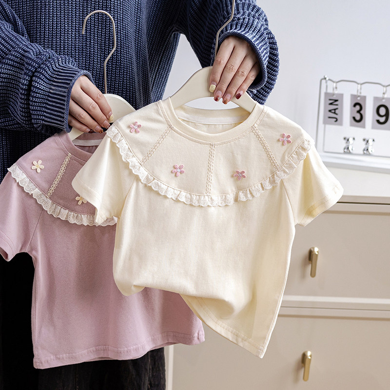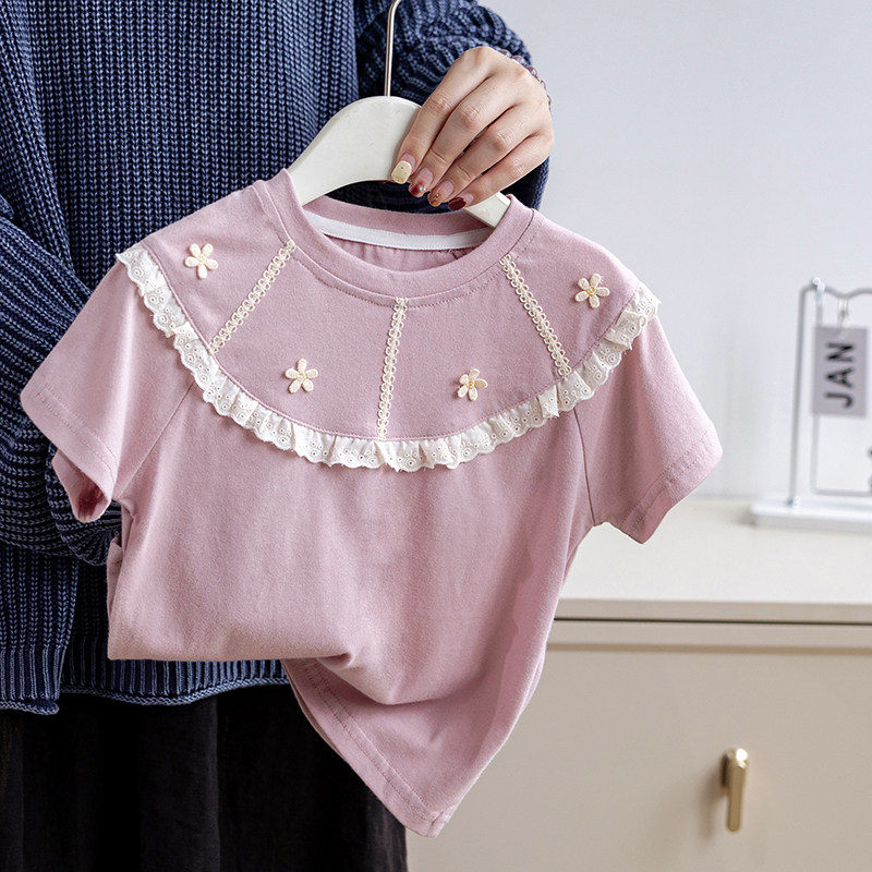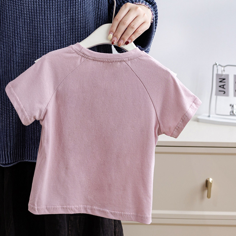 女童纯棉装插肩短袖T恤2026夏季新款儿童宝宝休闲洋气宽松上衣