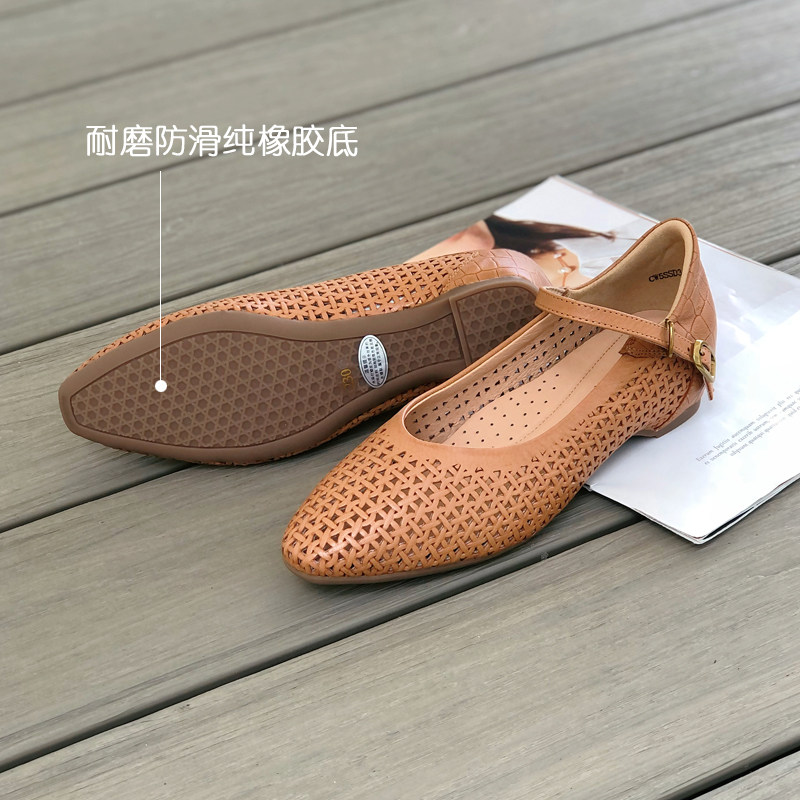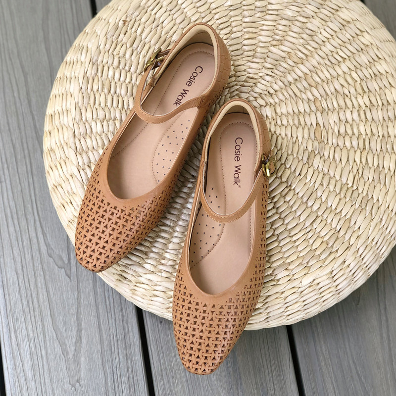 内增高玛丽珍鞋2025春夏新款透气不闷脚真皮镂空浅口单鞋软皮软底