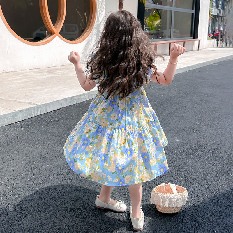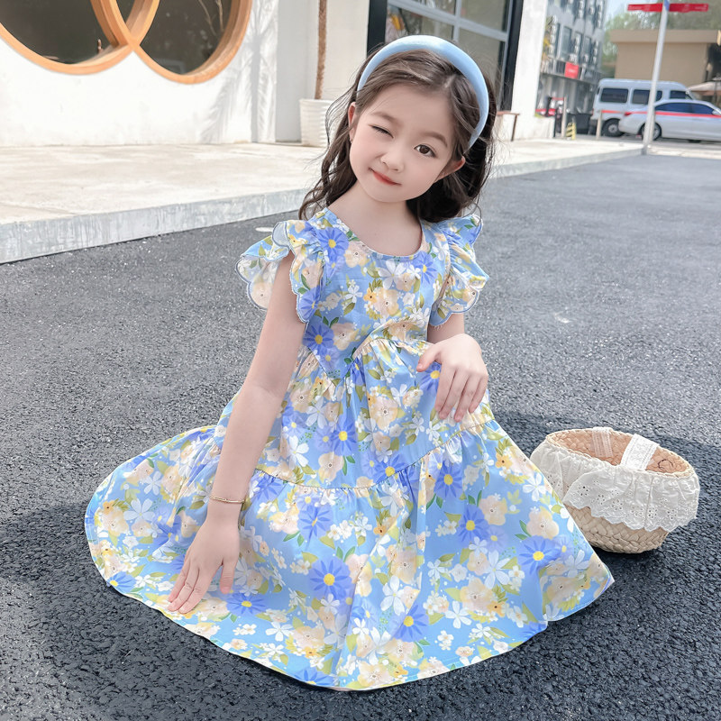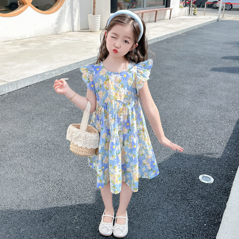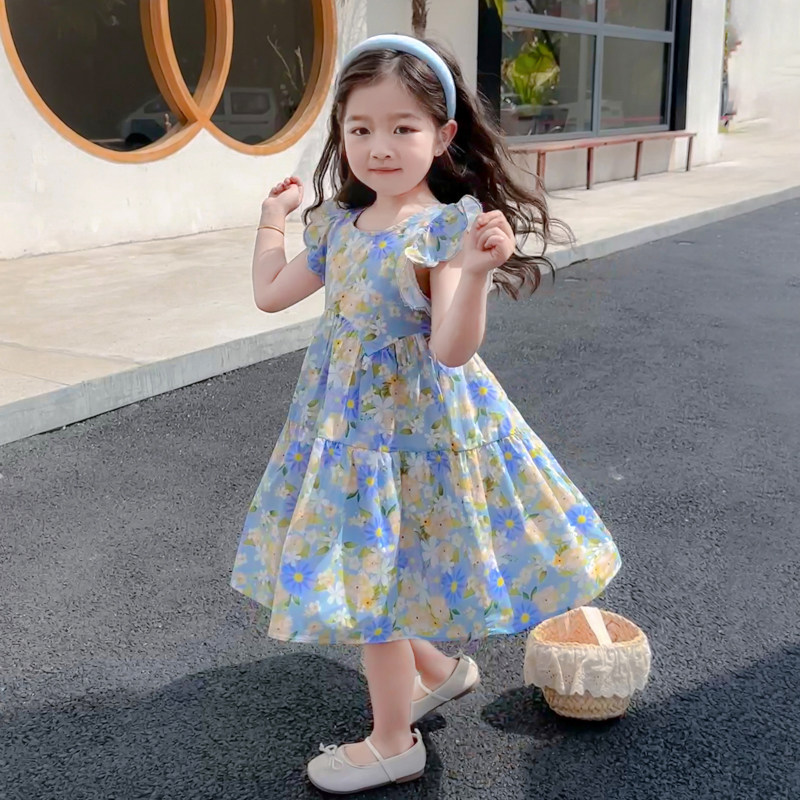 女童飞袖碎花连衣裙2026新款女宝韩版夏季甜美公主风洋气薄款裙子