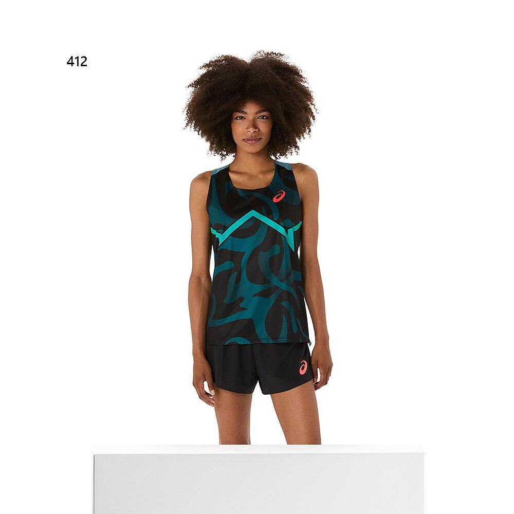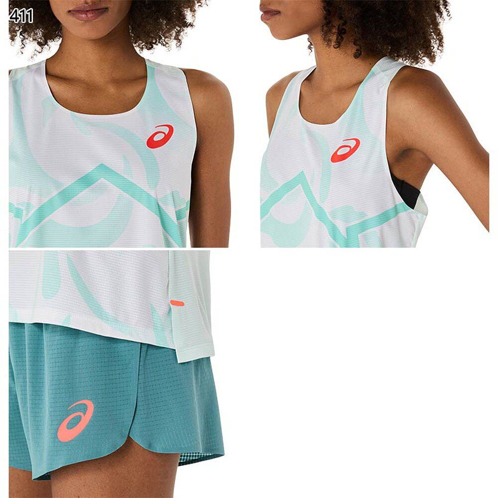 日本直邮ASICS 女士炫酷图案背心田径服比赛上衣无袖透气轻便锻炼