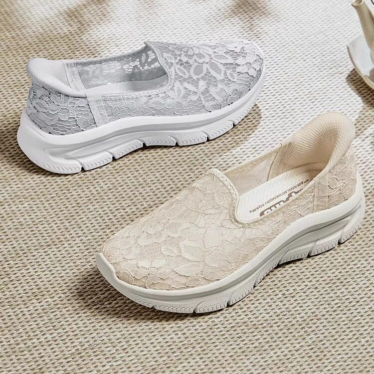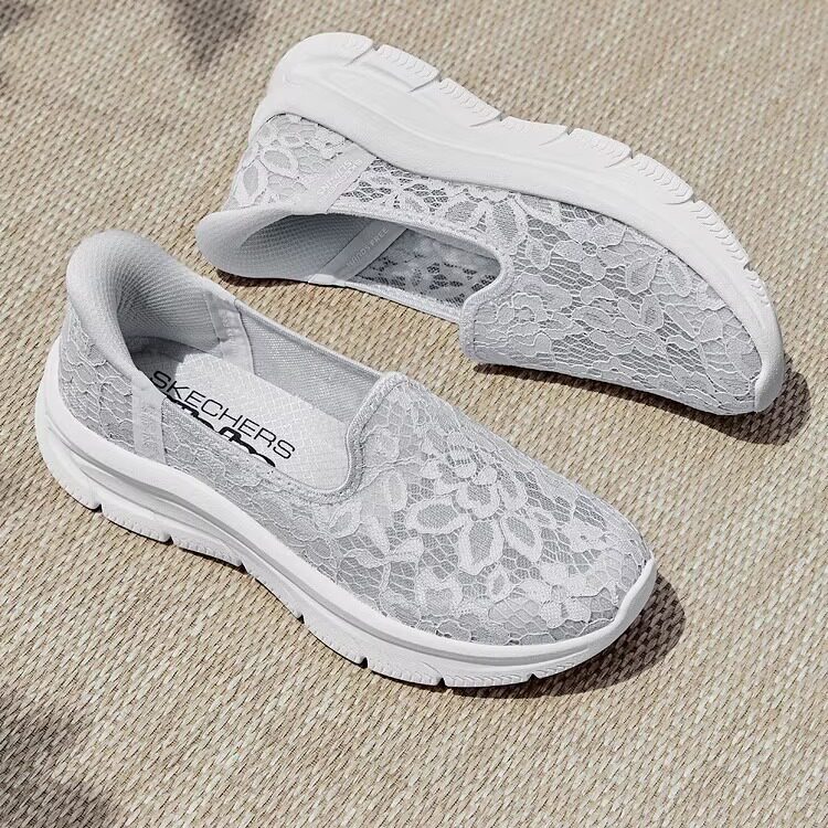 Skechers斯凯奇女鞋春夏款闪穿一脚蹬休闲鞋透气蕾丝健步鞋158858