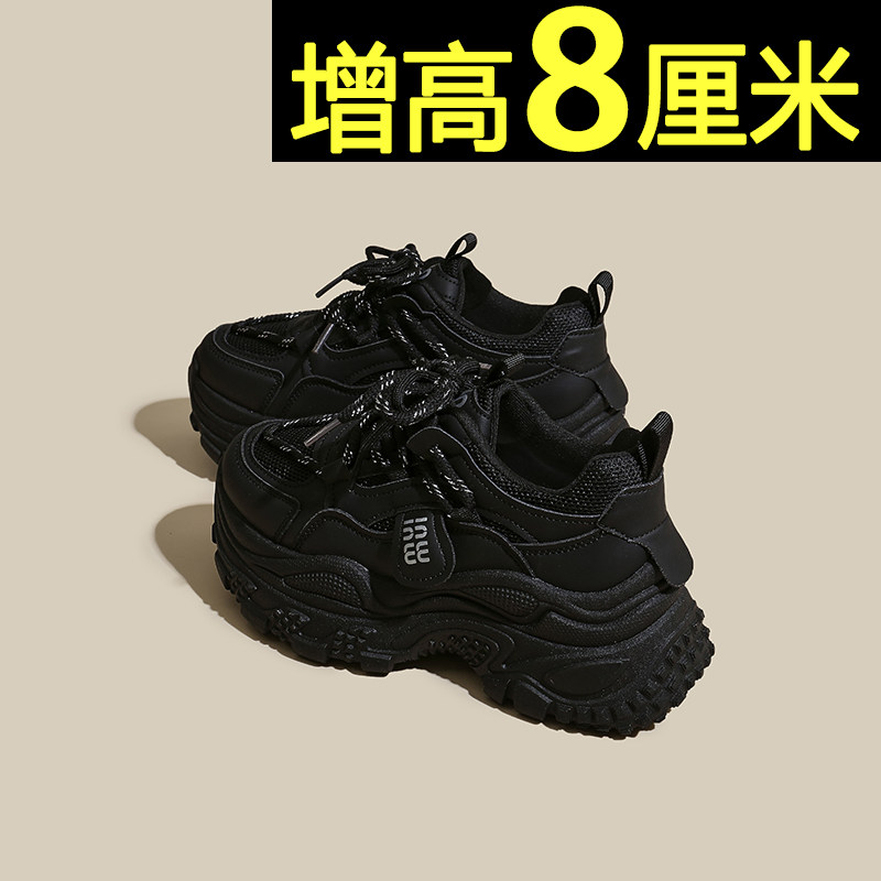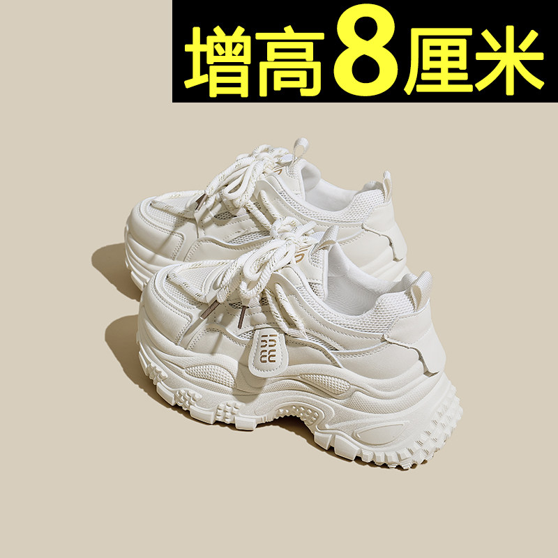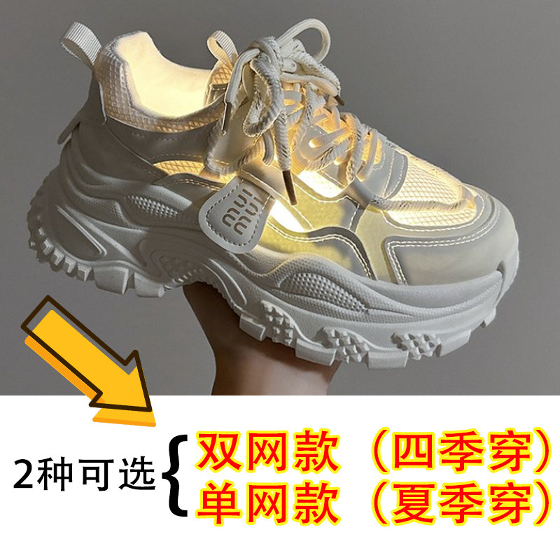 厚底老爹鞋女款2026新款夏季网面休闲运动鞋内增高百搭透气小白鞋
