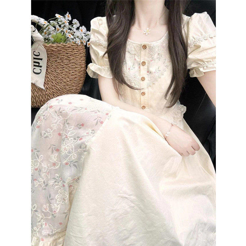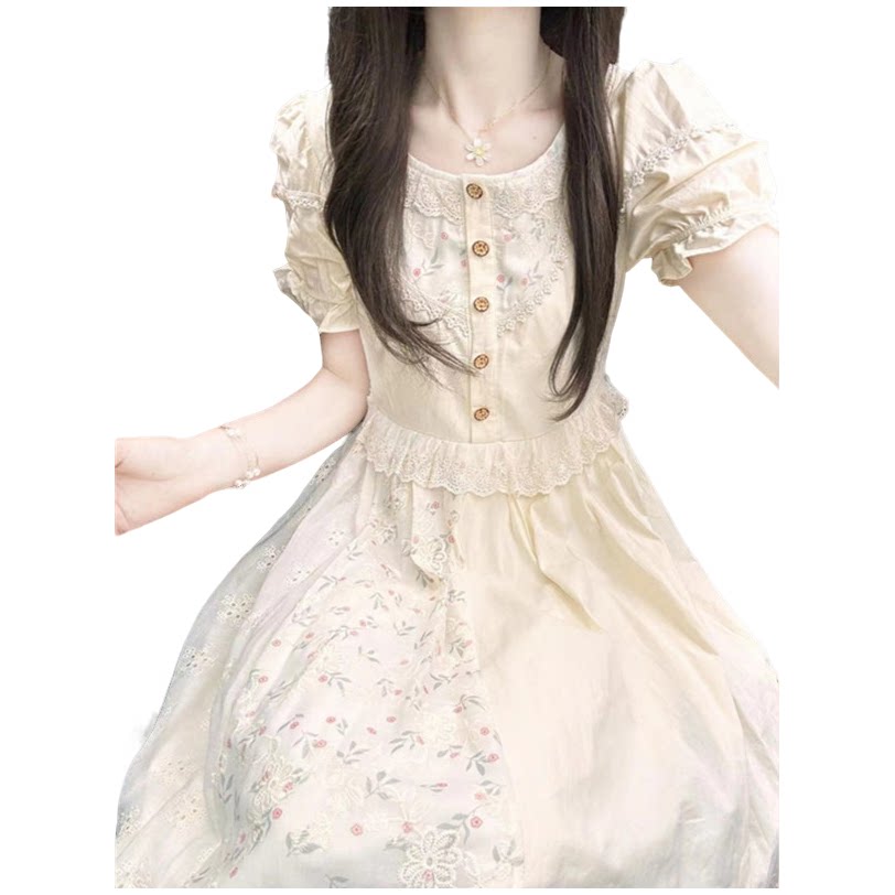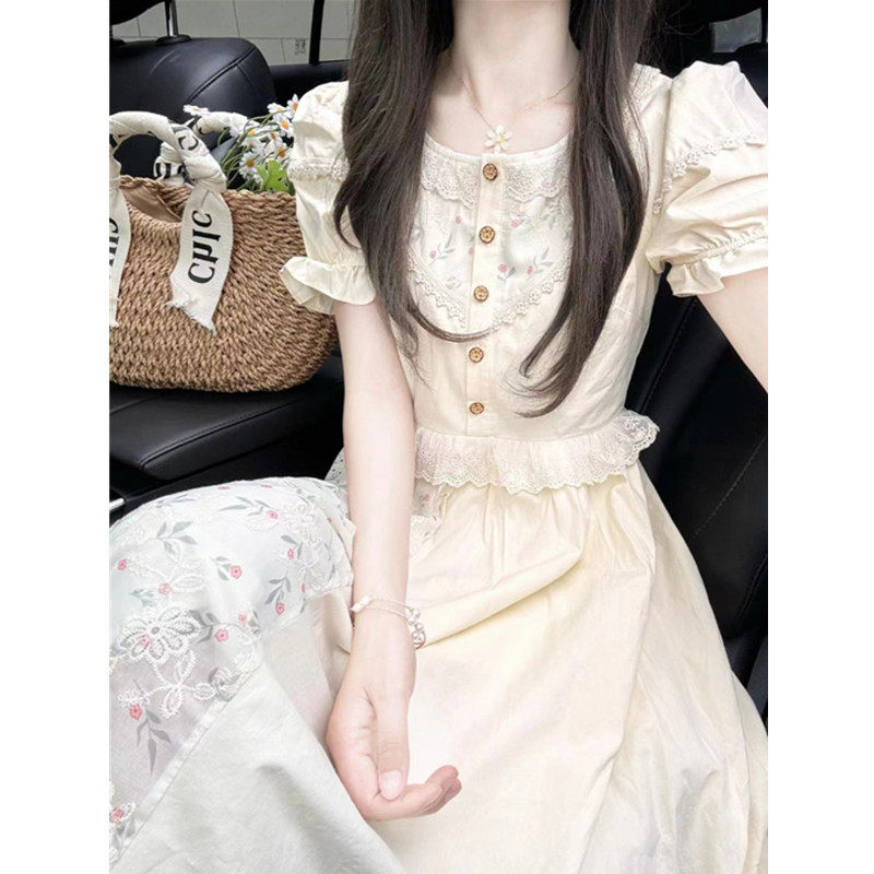 茶歇法式连衣裙女大童森系夏装初中生学院风甜美少女收腰显瘦裙子