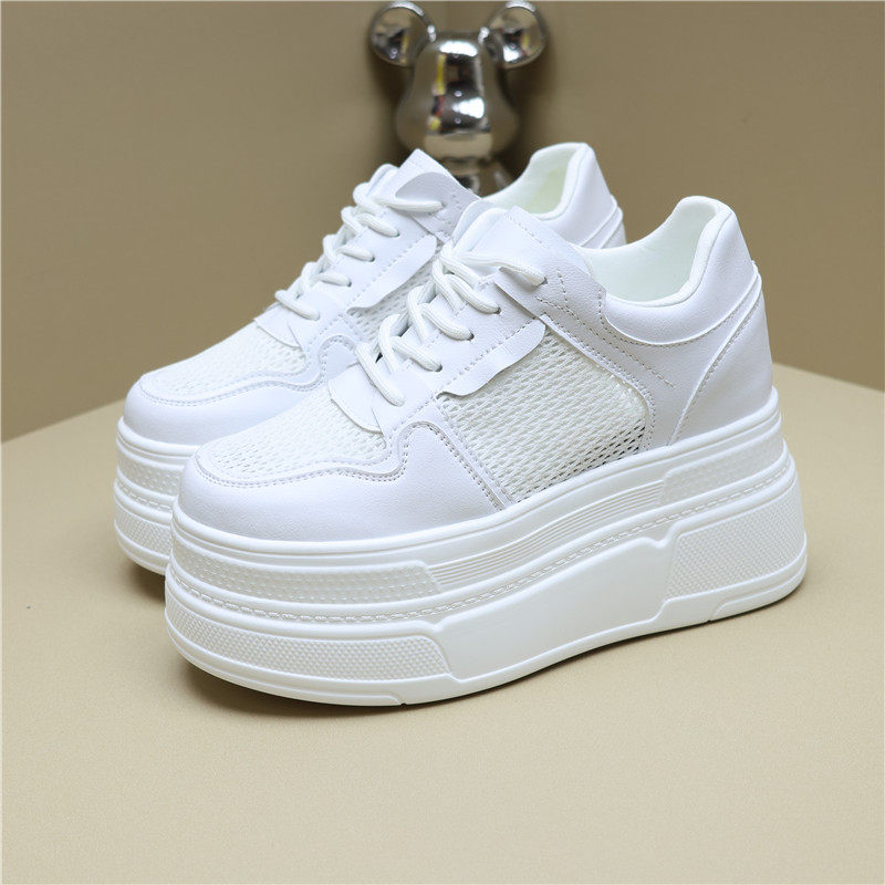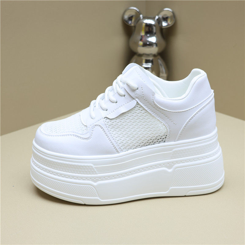 14公分内增高女鞋夏季12厘米增高真皮网纱透气小白鞋配裙8cm女鞋