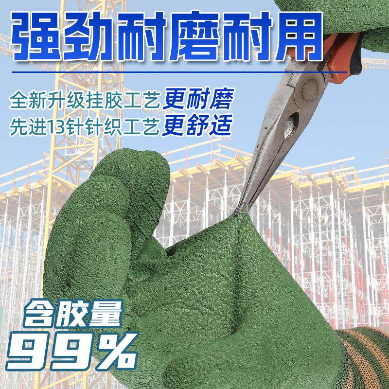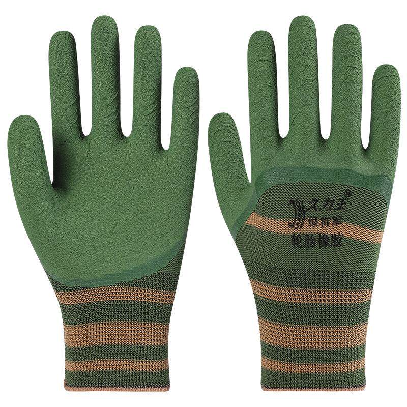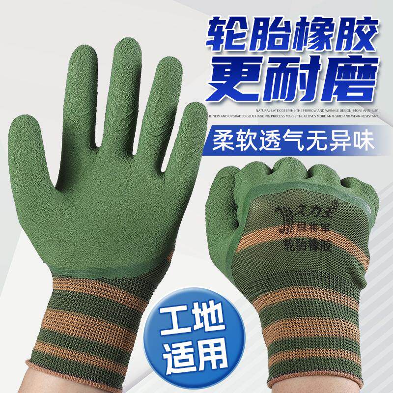 正品轮胎橡胶劳保手套工作耐磨防滑柔软透气乳胶浸胶加厚工地建筑