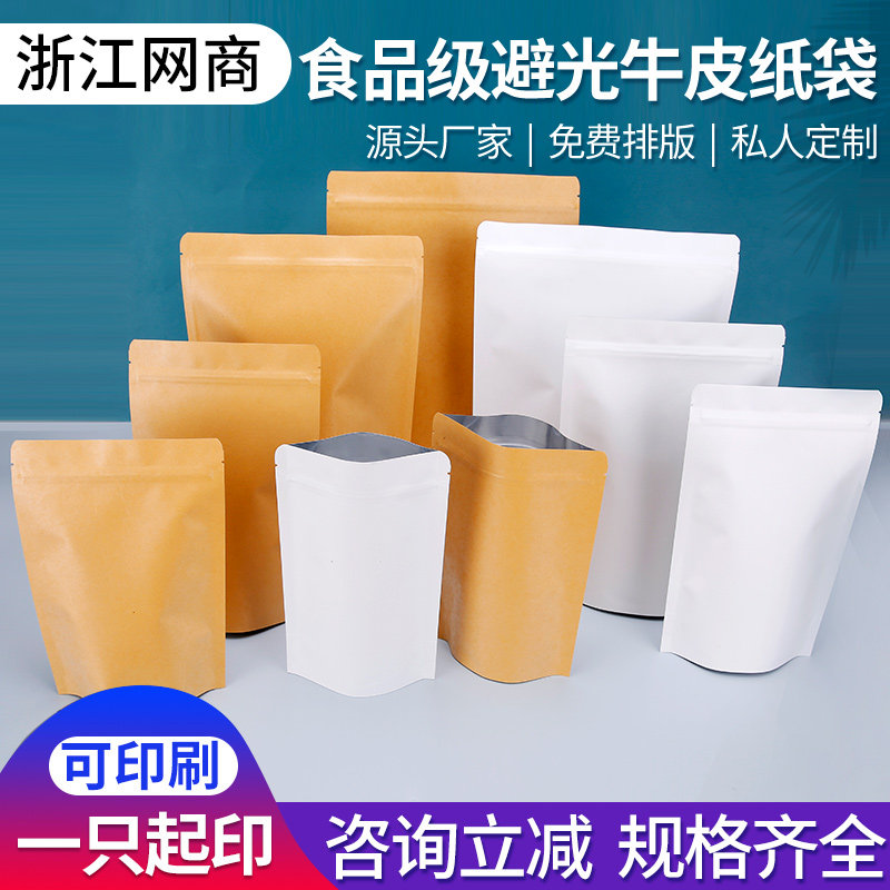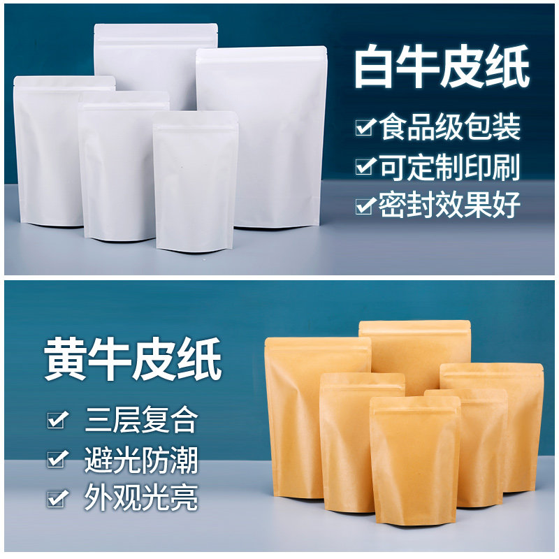 牛皮纸袋自封袋茶叶密封袋食品封口袋加厚干果牛肉干镀铝包装袋子