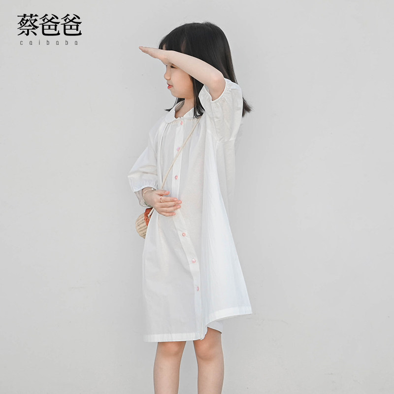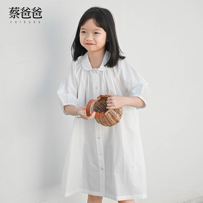 蔡爸爸原创童装2026年新款夏装白色女童连衣裙娃娃领衬衫裙子652