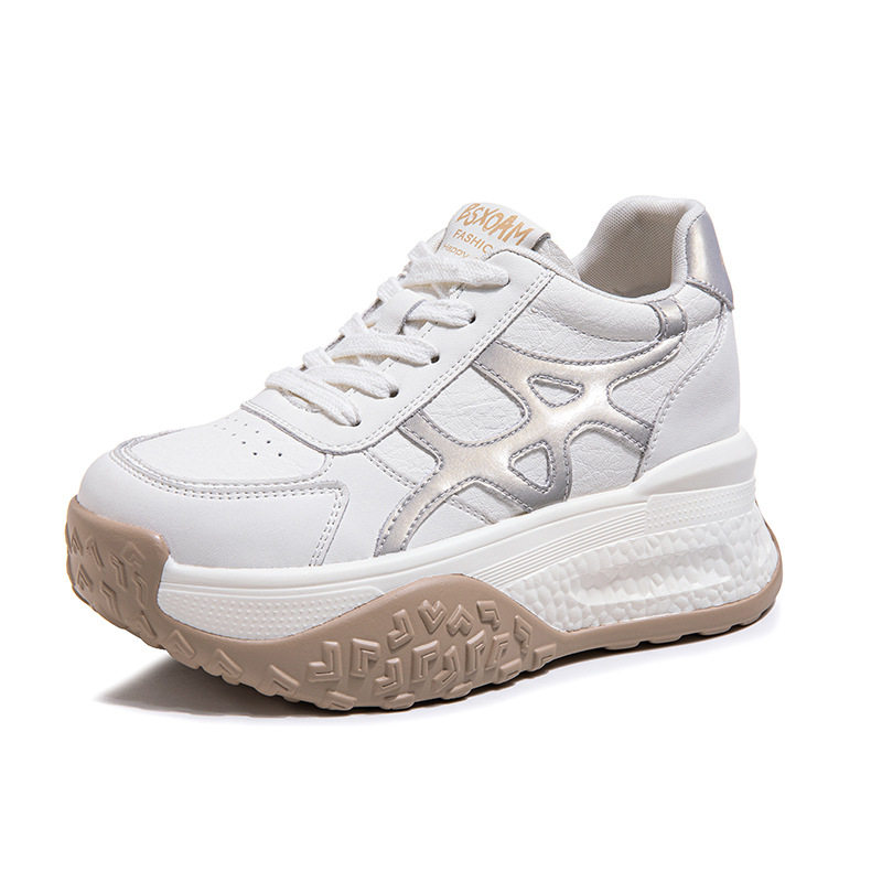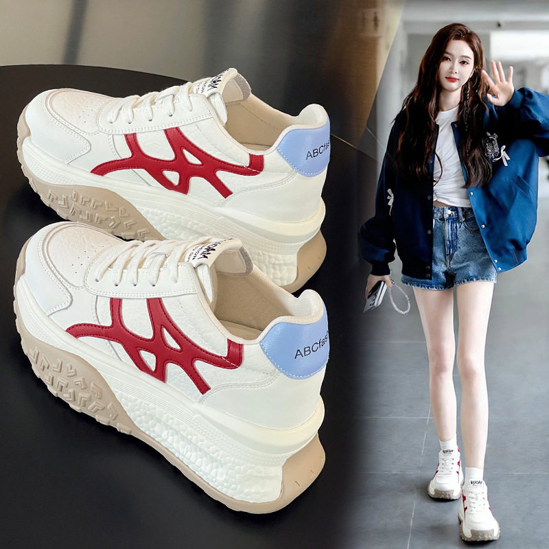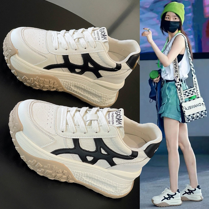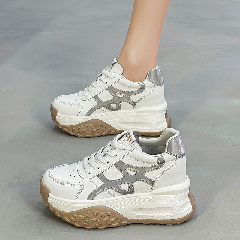 内增高小白鞋女2026春季新款休闲运动老爹鞋真皮厚底小个子德训鞋