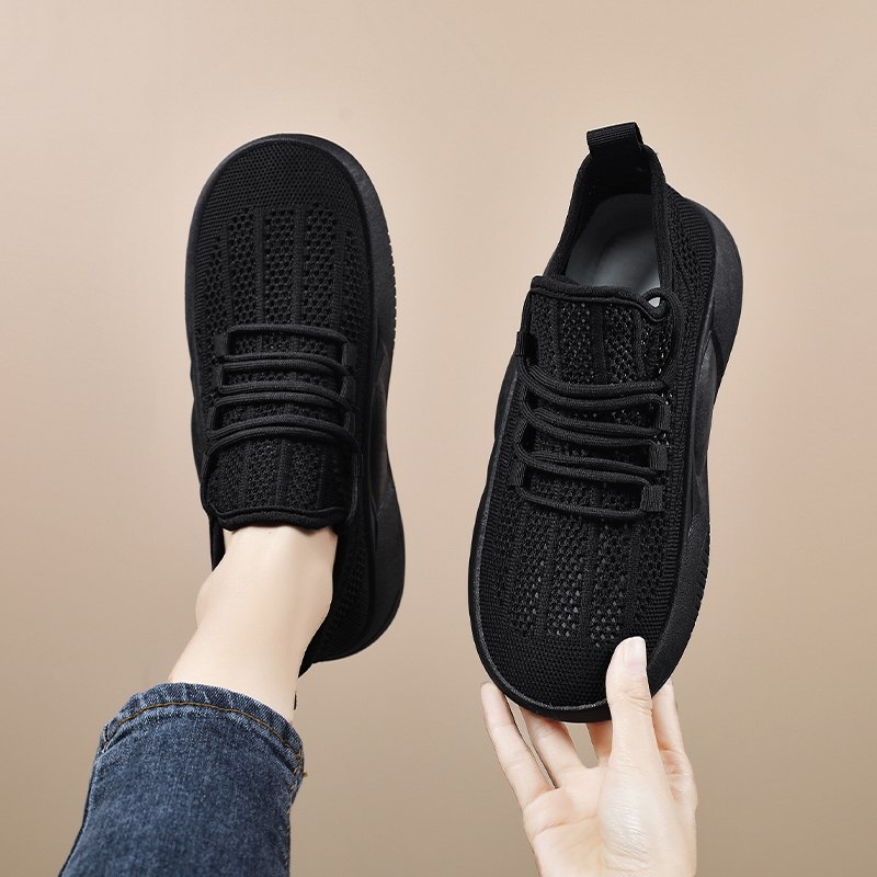 全黑色运动鞋女款夏季镂空透气网鞋软底久站不累脚防滑上班工作鞋