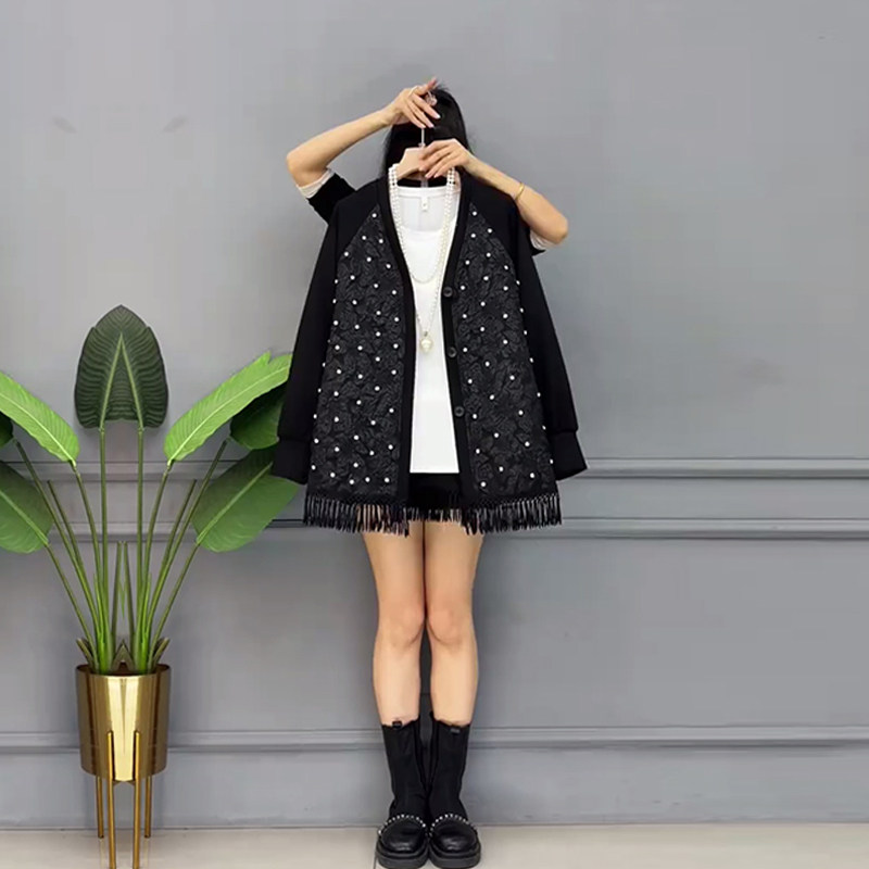 加肥大码女装流苏底摆长袖亮钻上衣胖妹妹2026早春新款百搭外套潮
