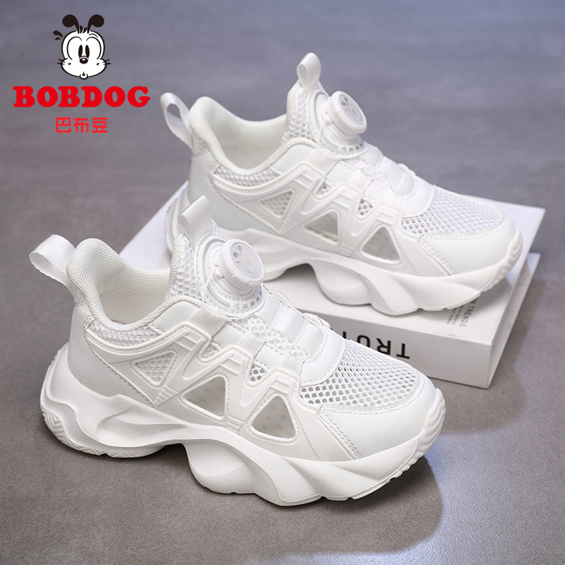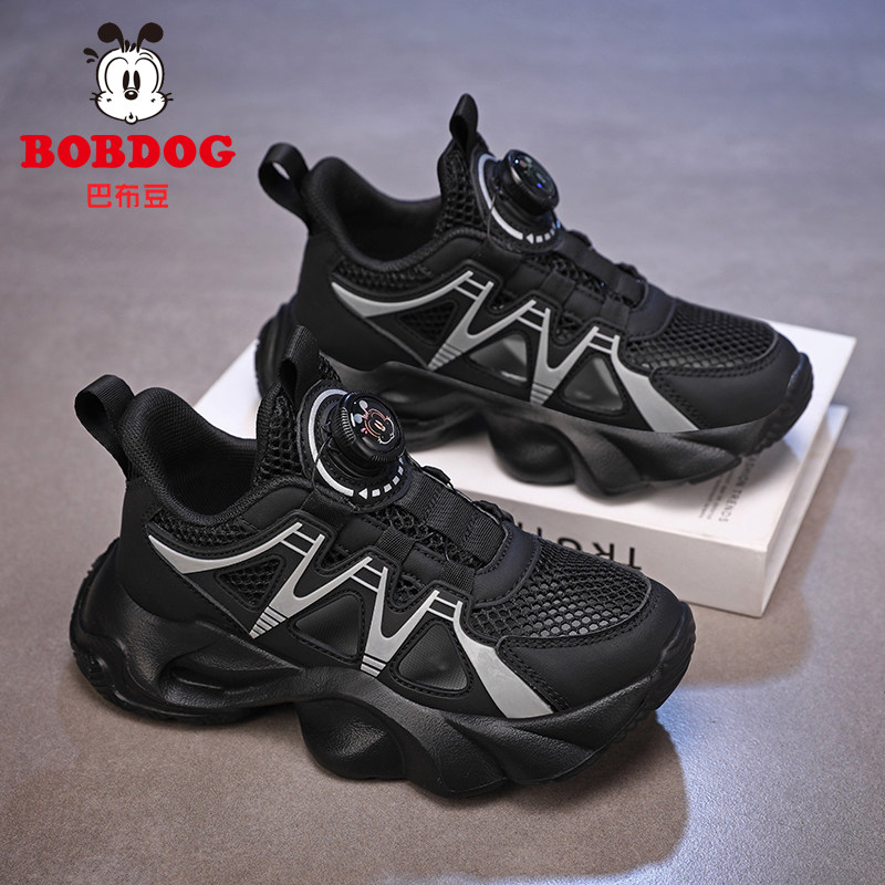 巴布豆男童鞋子2026新款夏季网面透气女孩黑色单网镂空儿童运动鞋
