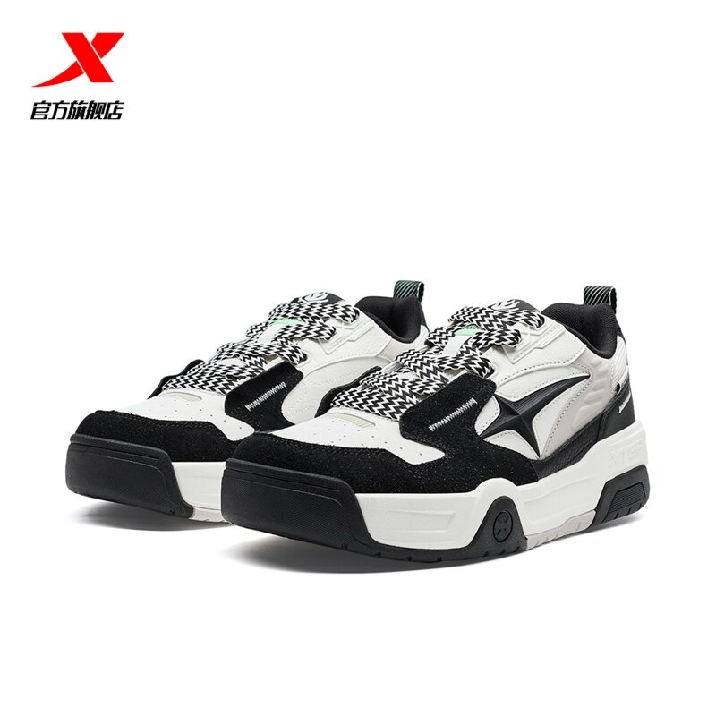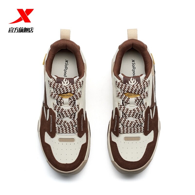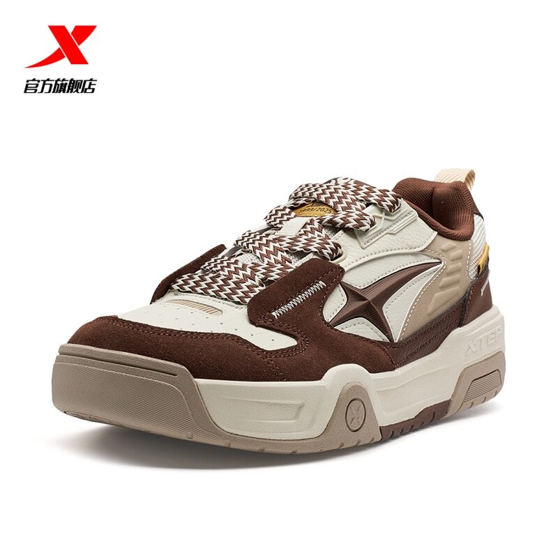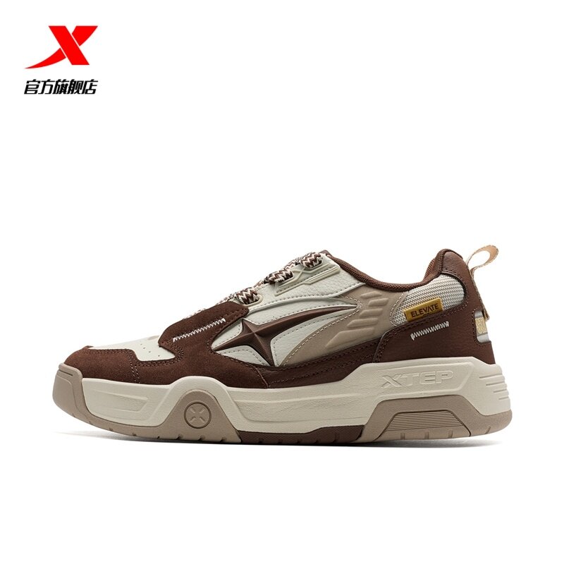 特步面包鞋2026春季新款男鞋板鞋皮面保暖增高休闲鞋976419310041