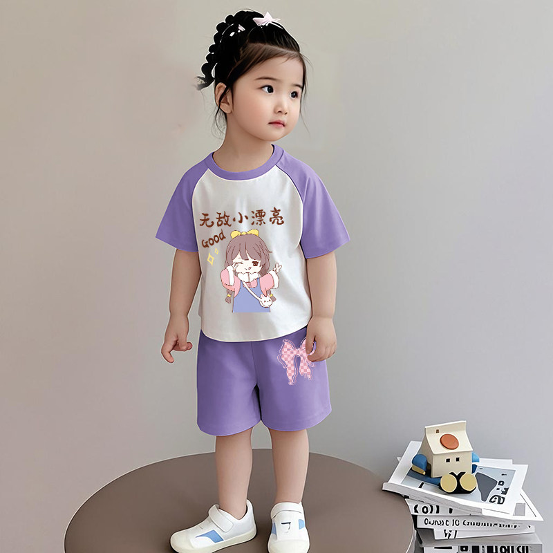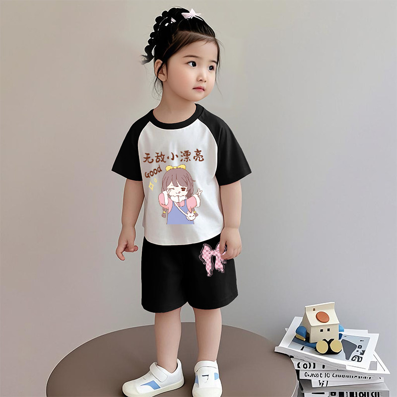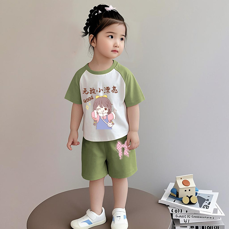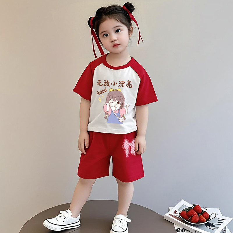 女童夏装套装2026新款夏季纯棉薄款儿童短袖短裤外穿炸街两件套潮