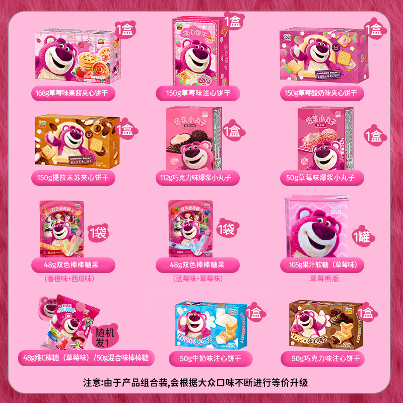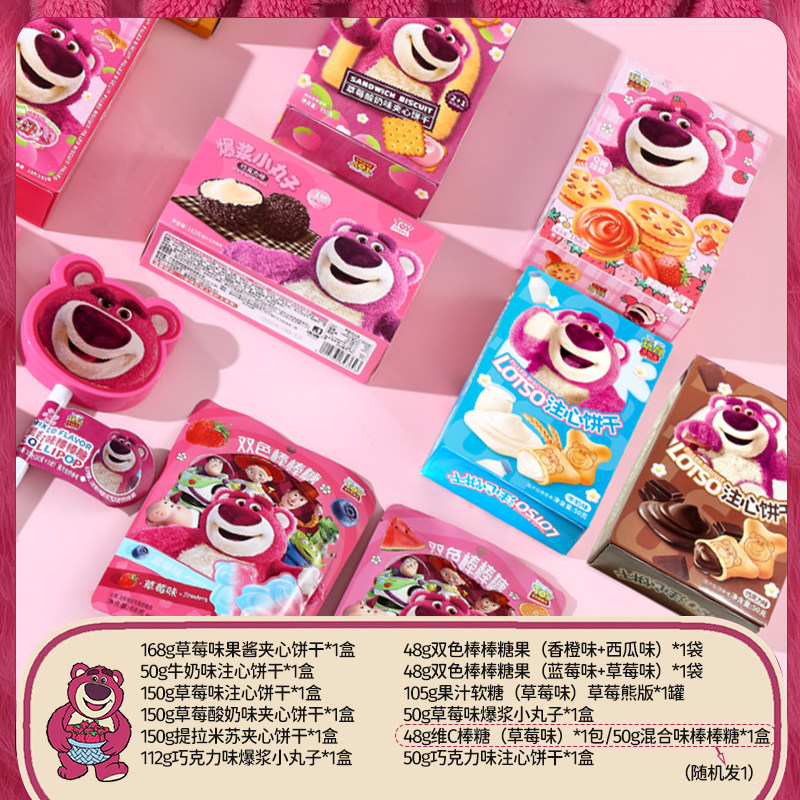 迪士尼草莓熊蛋糕礼盒零食大礼包送小朋友节日礼物礼盒糖果饼干